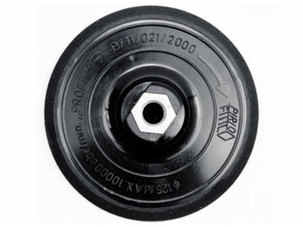 Dysk do krążków ściernych o wzmocnionej konstrukcji. W części roboczej rzep do szybkiego i stabilnego przytwierdzania krążków ściernych o średnicy 125 mm. Przeznaczony do wszelkiego typu szlifierek kątowych.