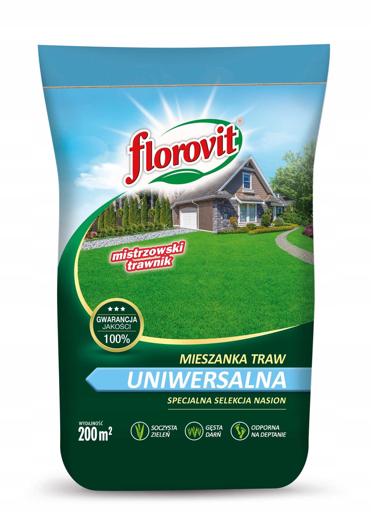 Florovit MIESZANKA TRAW UNIWERSALNA świetnie sprawdzi się w przydomowych ogrodach, działkach i wszędzie tam, gdzie trawnik to miejsce relaksu i wypoczynku. Specjalna selekcja nasion traw gazonowych, dopasowanych do polskich warunków klimatycznych gwarantuje uzyskanie pięknego trawnika o wysokich walorach estetycznych i użytkowych oraz dobrej mrozoodporności.