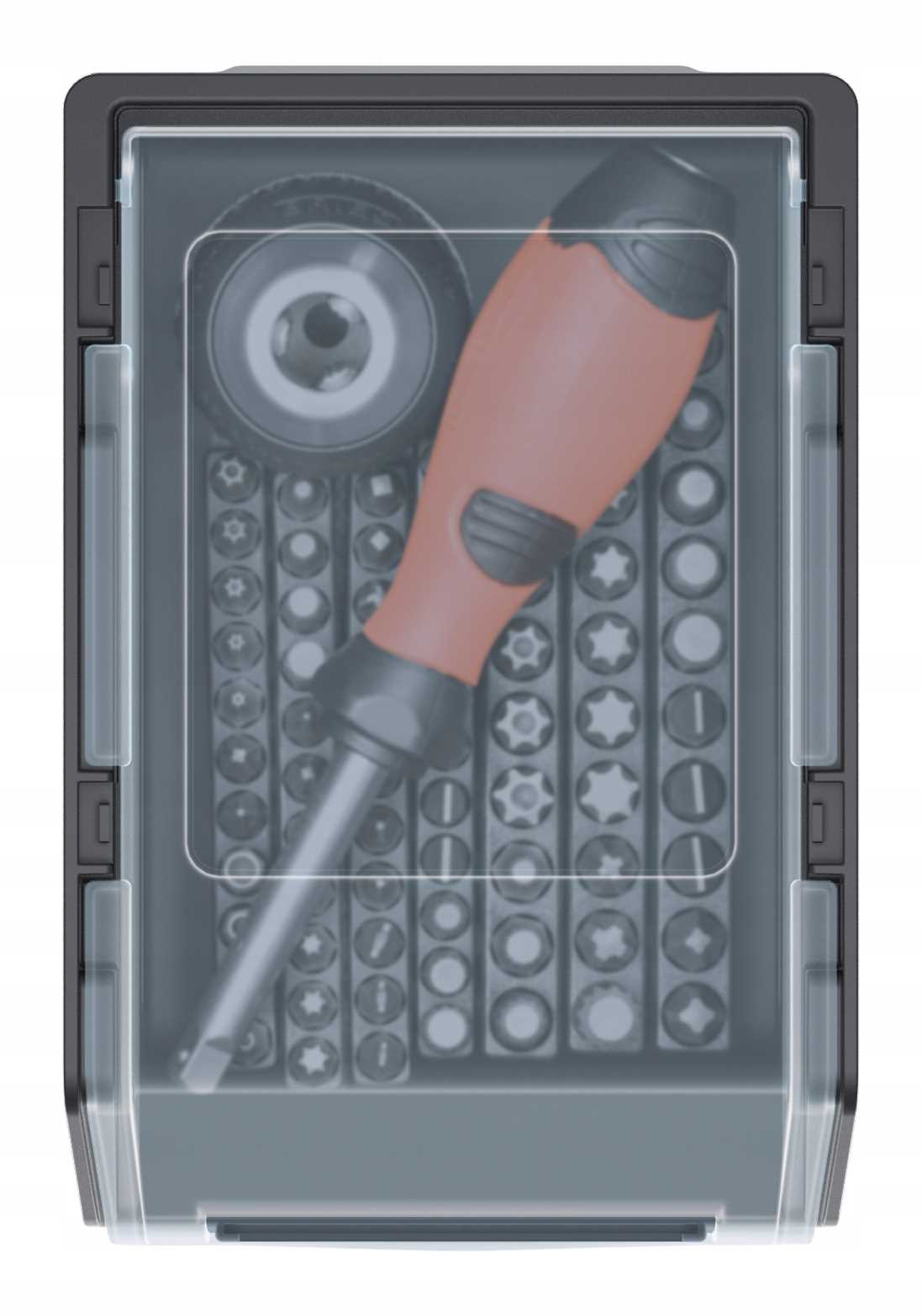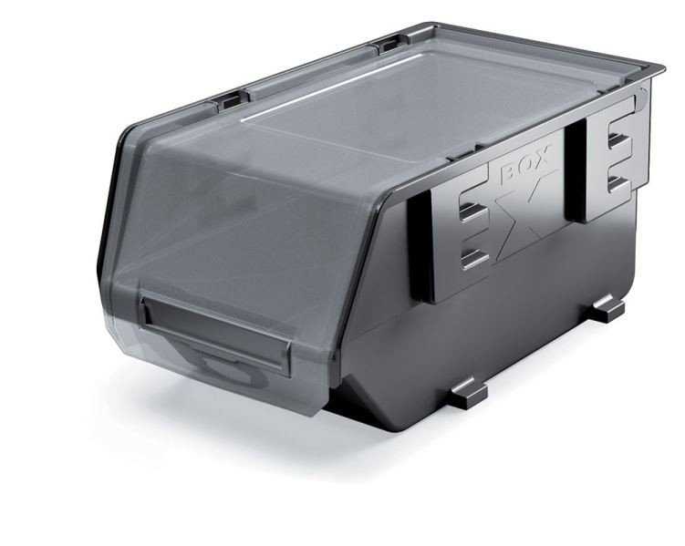 Pojemnik magazynowy EXE Box z wytrzymałej mieszanki polimerów z przezroczystą pokrywką. Istnieje możliwość łączenia ze sobą kilku pojemników Exe Box oraz zawieszenia ich na ścianie przy pomocy dedykowanego panelu, co pozwala na stworzenie wygodnej przestrzeni do przechowywania.