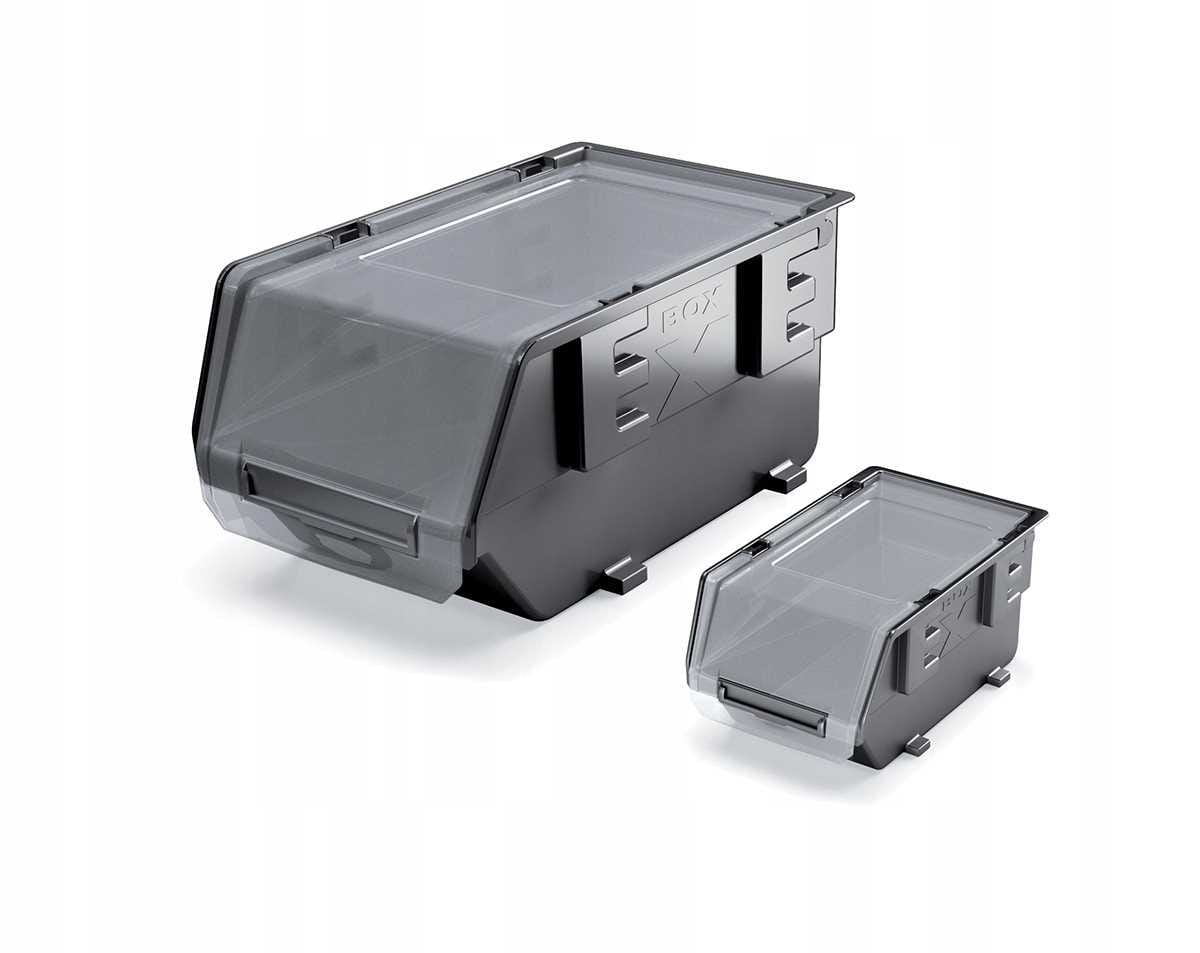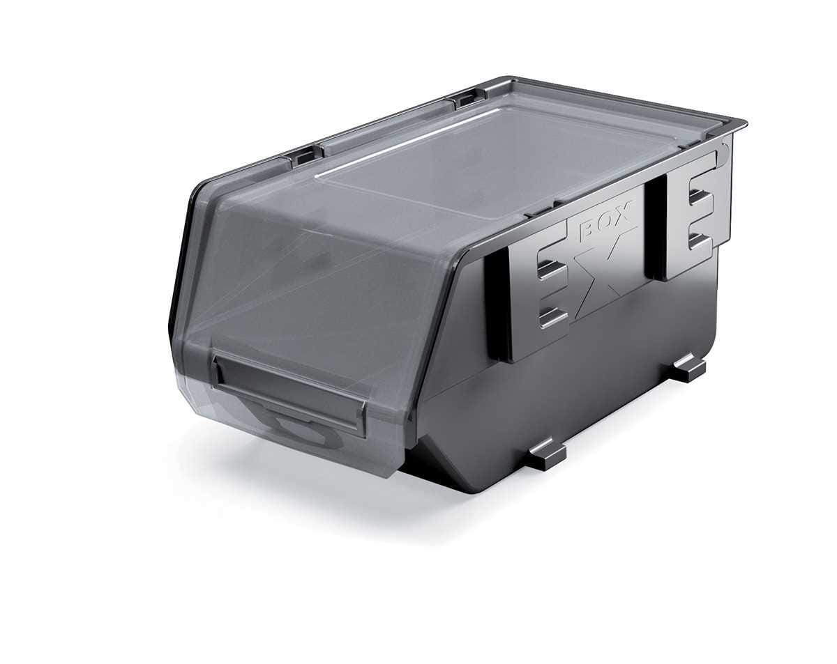 Pojemnik magazynowy EXE Box z wytrzymałej mieszanki polimerów z przezroczystą pokrywką. Istnieje możliwość łączenia ze sobą kilku pojemników Exe Box oraz zawieszenia ich na ścianie przy pomocy dedykowanego panelu, co pozwala na stworzenie wygodnej przestrzeni do przechowywania.