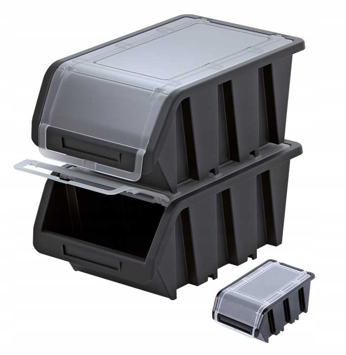Otwarte fronty zapewniają łatwy dostęp do zawartości pojemników. Produkty oferowane w 7 rozmiarach. W 4 rozmiarach w wersji TRUCK PLUS z pokrywami, zapewniając pyłoszczelność oraz bezpieczeństwo w transporcie.