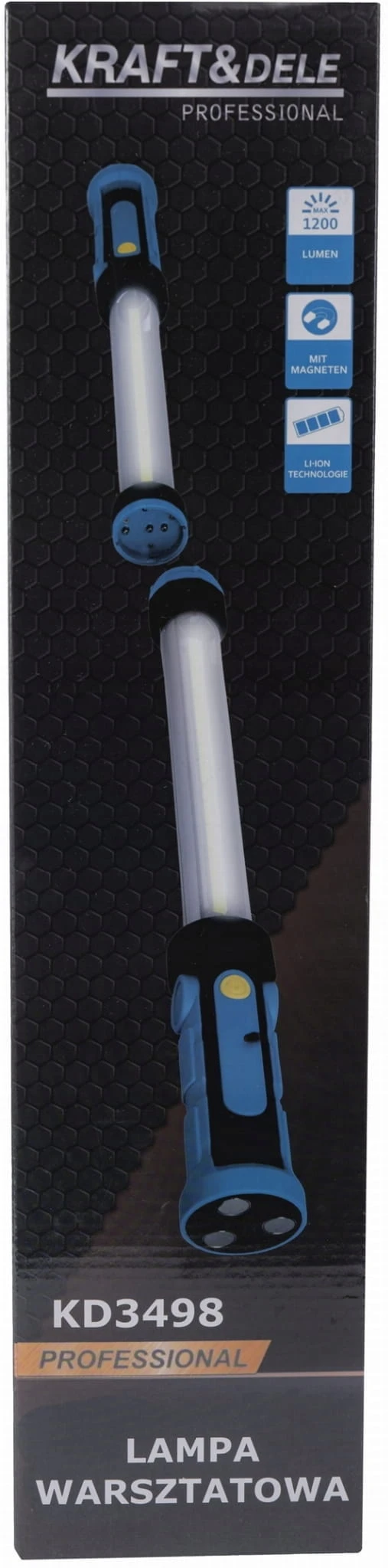 KD3498 to podwójna latarka warsztatowa o wysokiej mocy światła, stworzona z myślą o intensywnej pracy w warsztatach, serwisach oraz w zastosowaniach domowych. Wyposażona w dwa moduły COB 10W, może pracować zarówno jako jedna długa lampa o długości aż 1020 mm, jak i dwie niezależne latarki, co daje maksymalną elastyczność użytkowania.