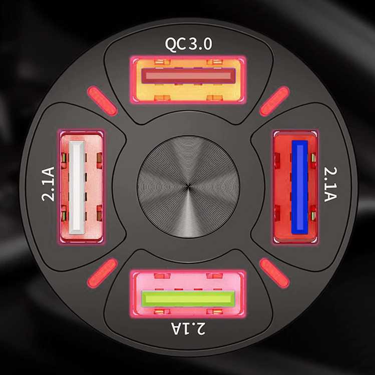 - SAMOCHODOWA - ładowarki z technologią szybkiego ładowania można także używać z urządzeniami, które nie wspierają szybkiego ładowania - bez obaw o uszkodzenie baterii. Po włączeniu ładowarki do gniazda zapalniczki pod portami USB zapala się czerwona dioda.