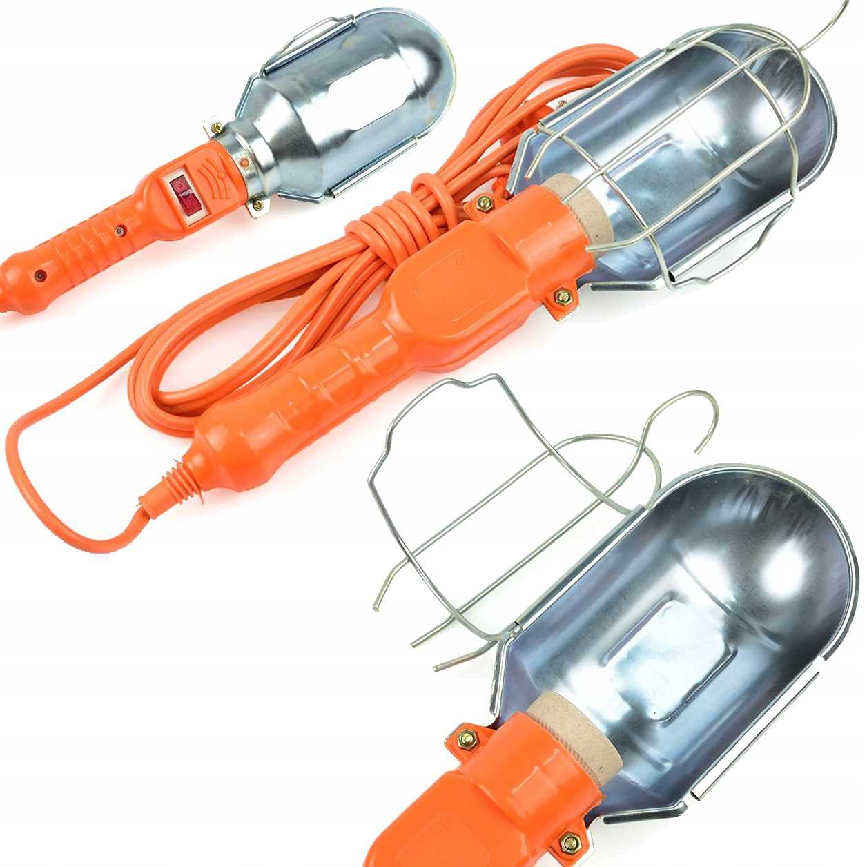Uniwersalna lampa warsztatowa zasilana z sieci 230V, przystosowana do żarówek z gwintem E27. Posiada metalową osłonę która chroni żarówkę przed uszkodzeniem oraz spełnia funkcje odbłyśnika kierując światło w jednym kierunku. Wyposażona we wbudowany włącznik oraz elastyczny przewód zasilający o długości 5m. Wbudowany hak pozwala powiesić lampę.