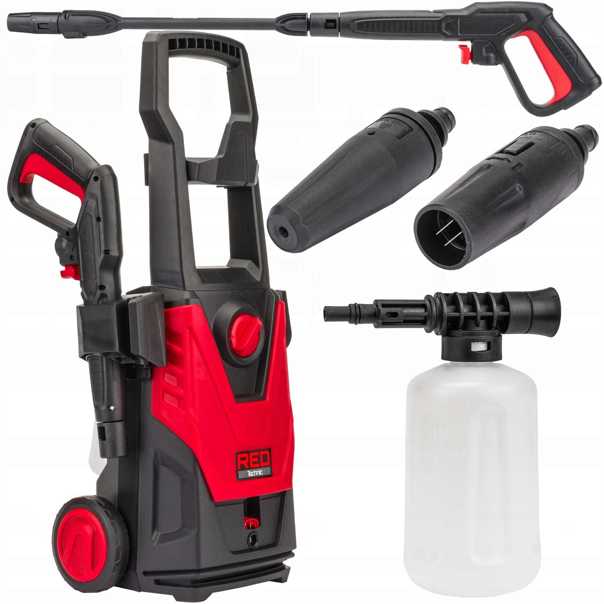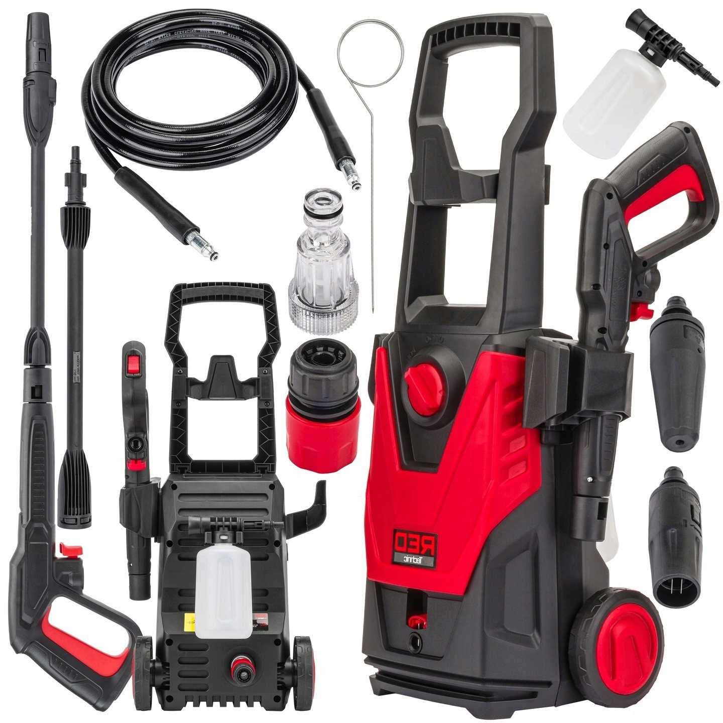 MYJKA WYSOKOCIŚNIENIOWA MARKI RED TECHNIC 1600W / 120BAR (DYSZA SZEROKOKĄTNA) / 230BAR (TURBODYSZA) + ZESTAW AKCESORIÓW