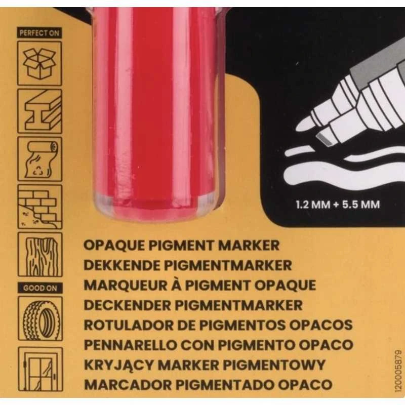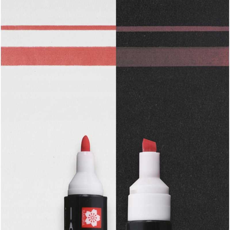 Sakura Permapaque to wyjątkowy, uniwersalny marker permanentny z atramentem pigmentowym na bazie wody. Marker ma dwie końcówki: cienką 1,2 mm i szeroką 5,5 mm, i nie wymaga wstrząsania ani pompowania przed użyciem.