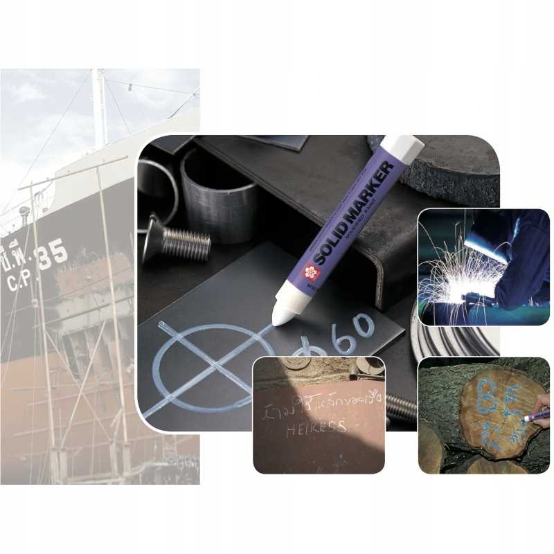 Niezwykle wytrzymały marker do wymagających zadań! Solid Marker to pierwsza na świecie farba w formie stałej w markerze. Zawsze działa, gdziekolwiek i kiedykolwiek! Innowacyjny mechanizm skrętu “stay fresh” utrzymuje farbę świeżą i gotową do użycia. Jeśli marker wyschnie, wystarczy go trochę przyciąć nożem. Końcówkę można też przyciąć, jeśli potrzebne jest mniejsze znakowanie.