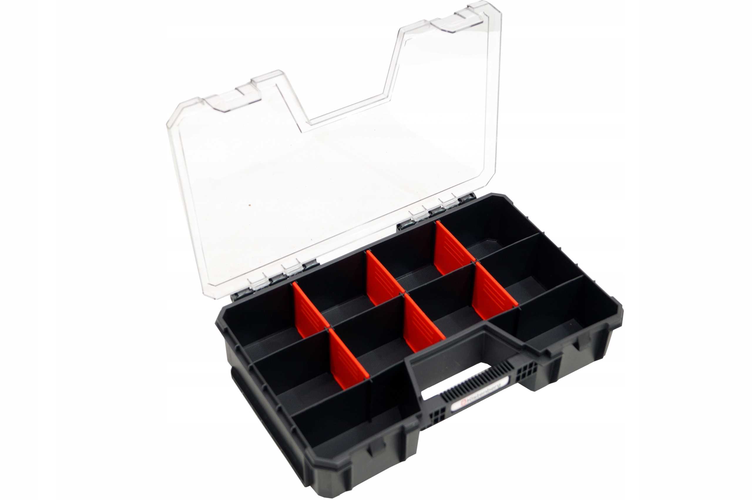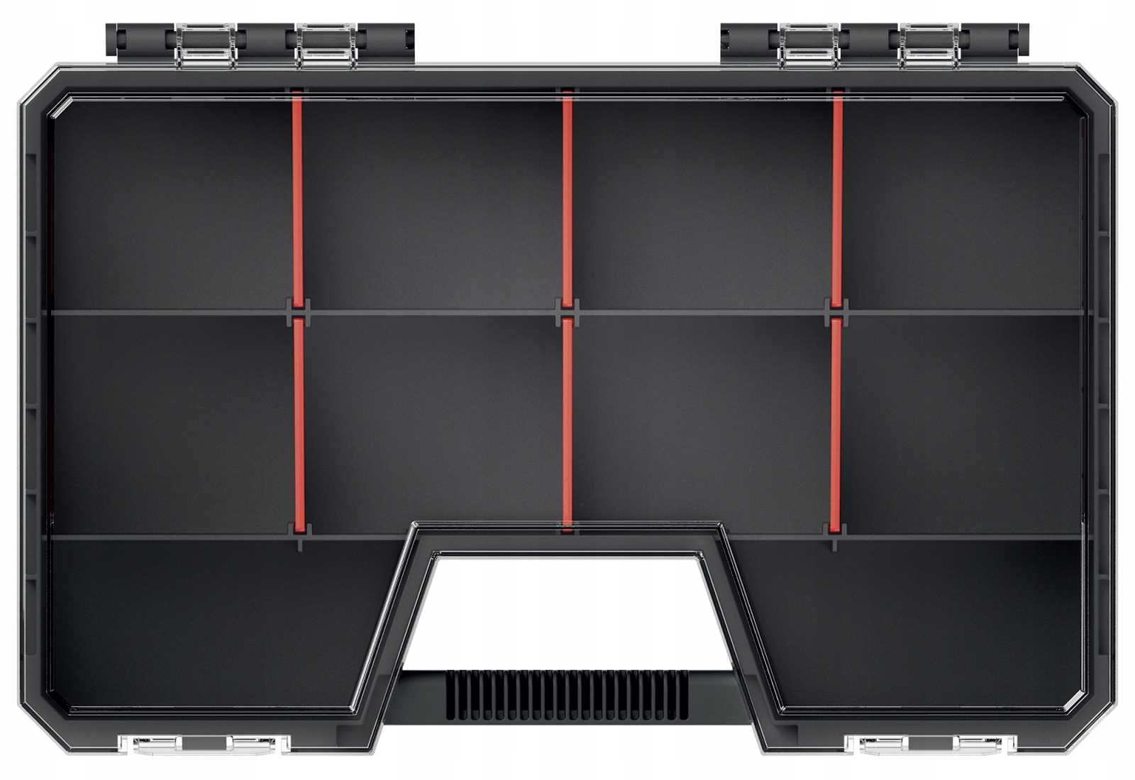 Organizer posiada 10 komór, które są oddzielane 6-ma wyjmowanymi przegrodami. Można go zatem dopasować do swoich potrzeb.