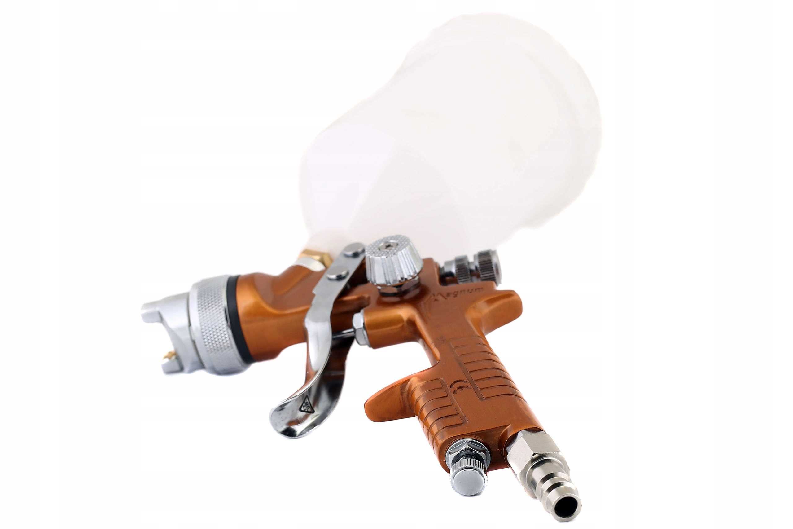 Niskociśnieniowe pistolety z dyszami HVLP (High Voltage Low Pressure) są dziś coraz bardziej popularne i cenione, szczególnie przez lakierników samochodowych, w przemyśle meblarskim oraz przez amatorów. Pistolety z dyszą HVLP dzięki niskiemu ciśnieniu pracy bardzo mocno pozwalają oszczędzić środki lakiernicze. Zalecany kompresor: zbiornik 100-150l z silnikiem minimum 3 kW. Pistoletami można malować z użyciem różnego rodzaju lakierów. Są bardzo dobrze wyprofilowane, idealnie leżą w dłoni. Są wytrzymałe i odporne. Jest to produkt marki Auarita / MAGNUM