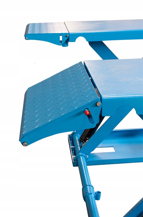Podnośnik wyposażony jest rampy najazdowe, które można zablokować jako przedłużenie platformy. Dodatkowo w zestawie znajduje się zestaw do przewożenia podnośnika co czyni go w pełni mobilnym urządzeniem.