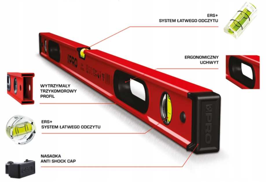- Seria PRO900 posiada libelle wykonane z najwyższej klasy szkła akrylowego dające gwarancję łatwego odczytu - ERS+.