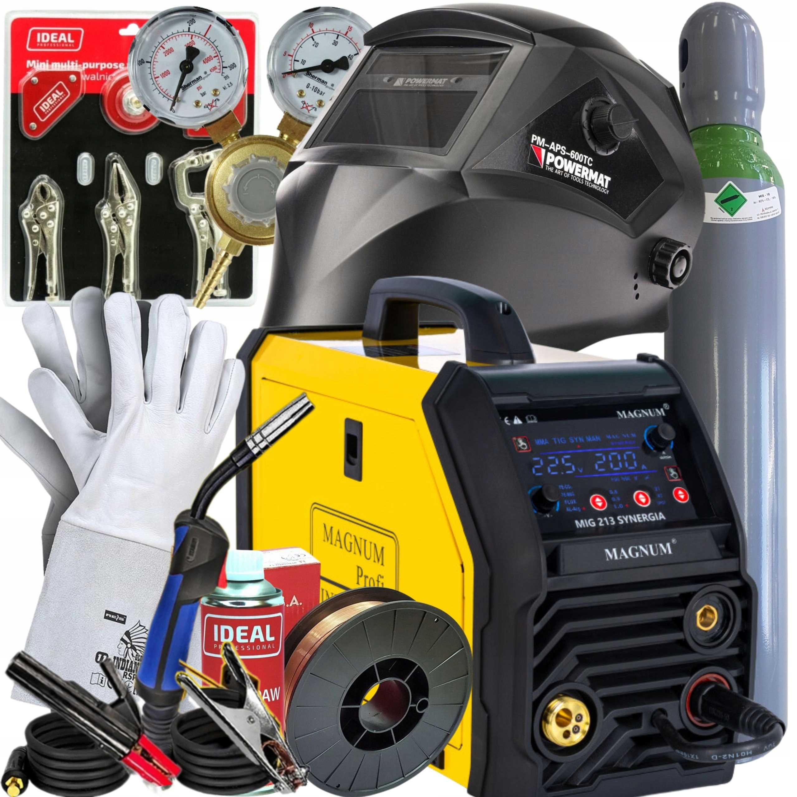 PRO PEŁNY FULL ZESTAW MAGNUM MIG 213 SYNERGIA PÓŁAUTOMAT INWERTER 200A/60%