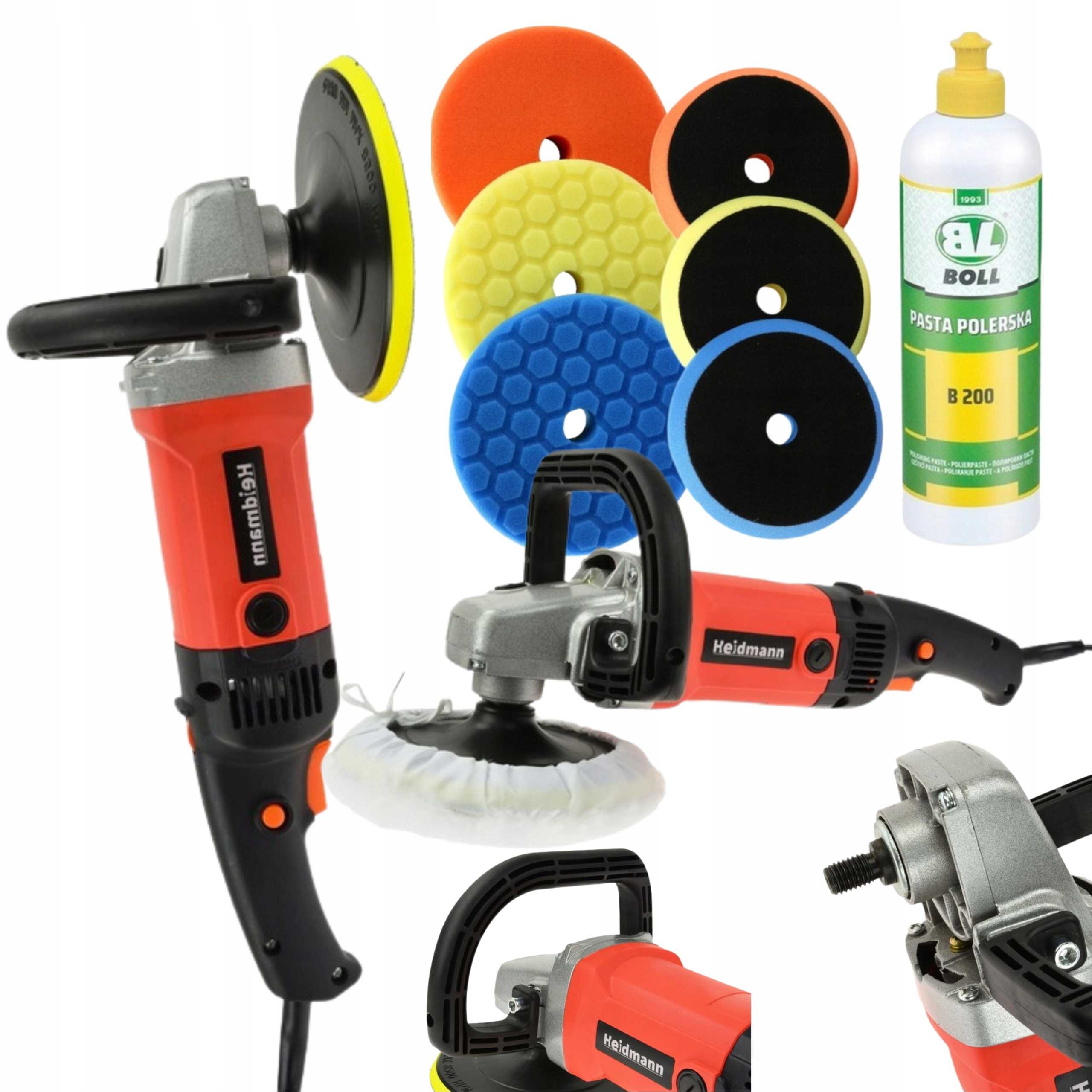 PROFESJONALNA POLERKA SAMOCHODOWA 180MM 1950W + PADY I PASTA POLERSKA B200 250ml BOLL