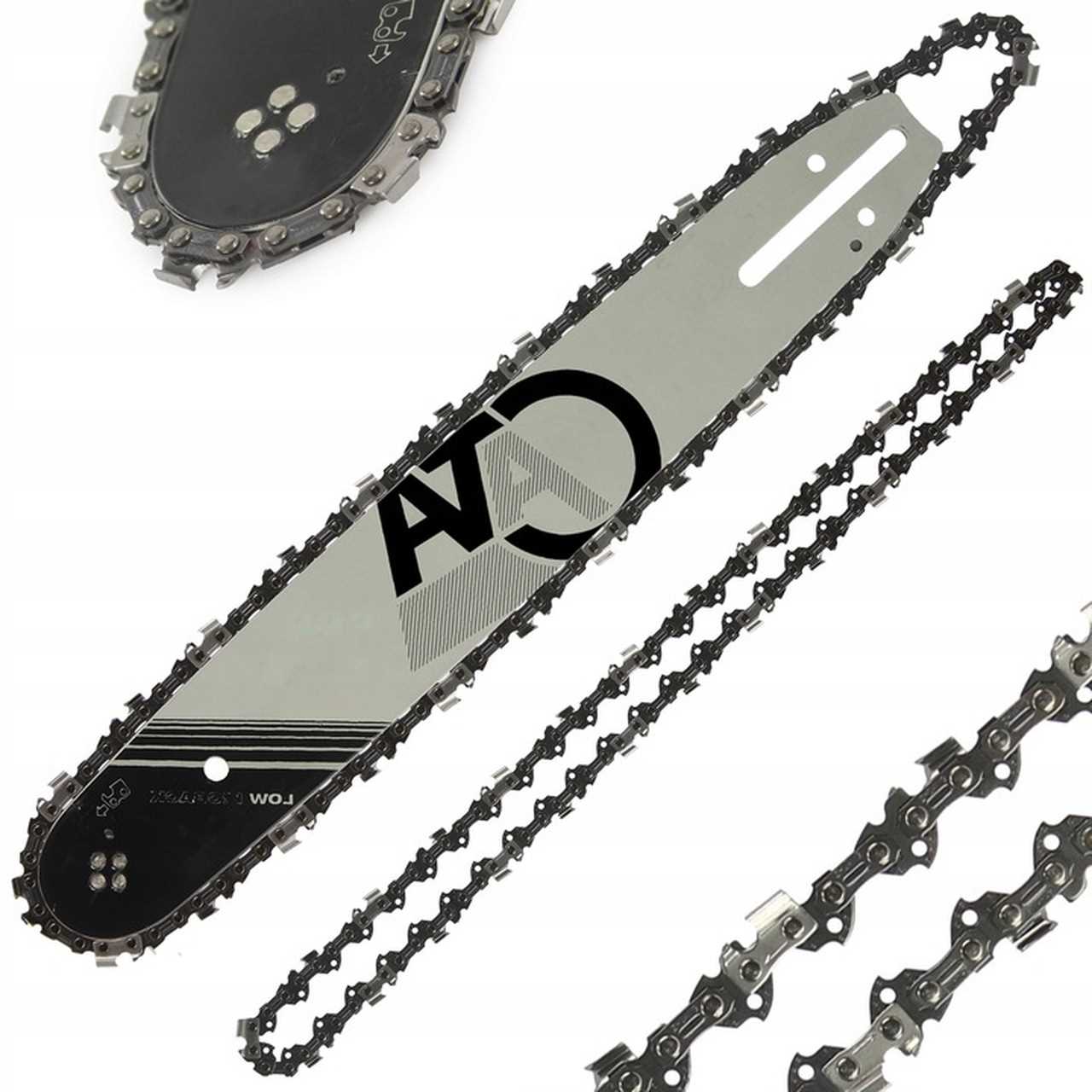 Wysokiej jakości prowadnica w zestawie z dwoma łańcuchami. Zastosowanie w pilarkach spalinowych przeznaczonych prac domowo ogrodowych, a także profesjonalnych.