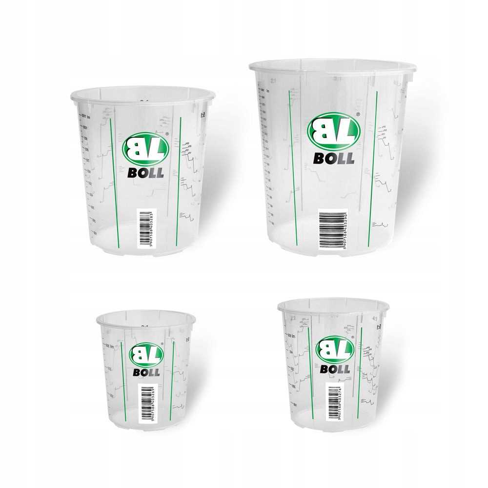 Uniwersalne pojemniki z przeźroczystego tworzywa z nadrukowaną podziałką umożliwiającą przygotowanie mieszanki w żądanej proporcji.