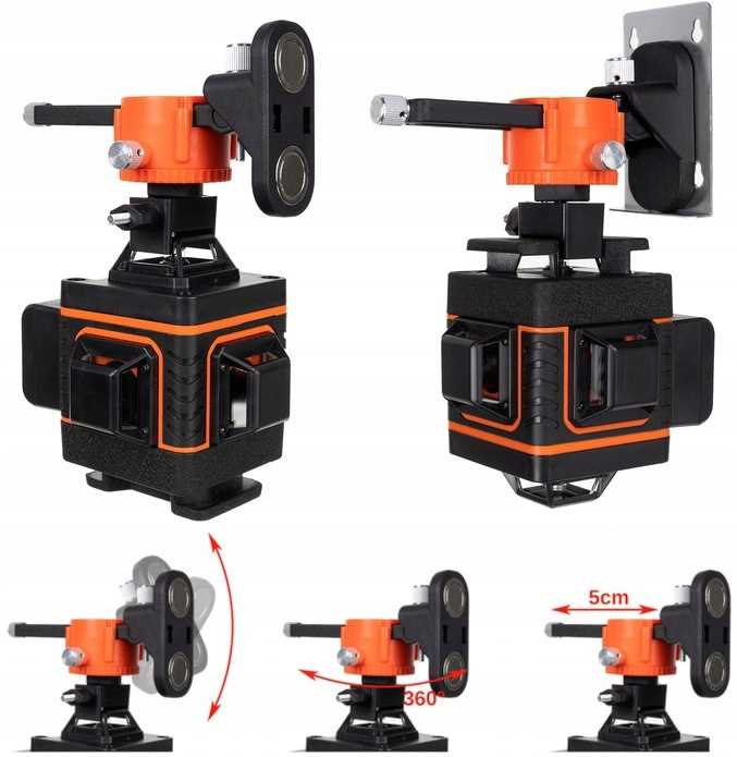 Poziomica laserowa płaszczyznowa Laser Krzyżowy 4D 16-liniowa 360 stopni
