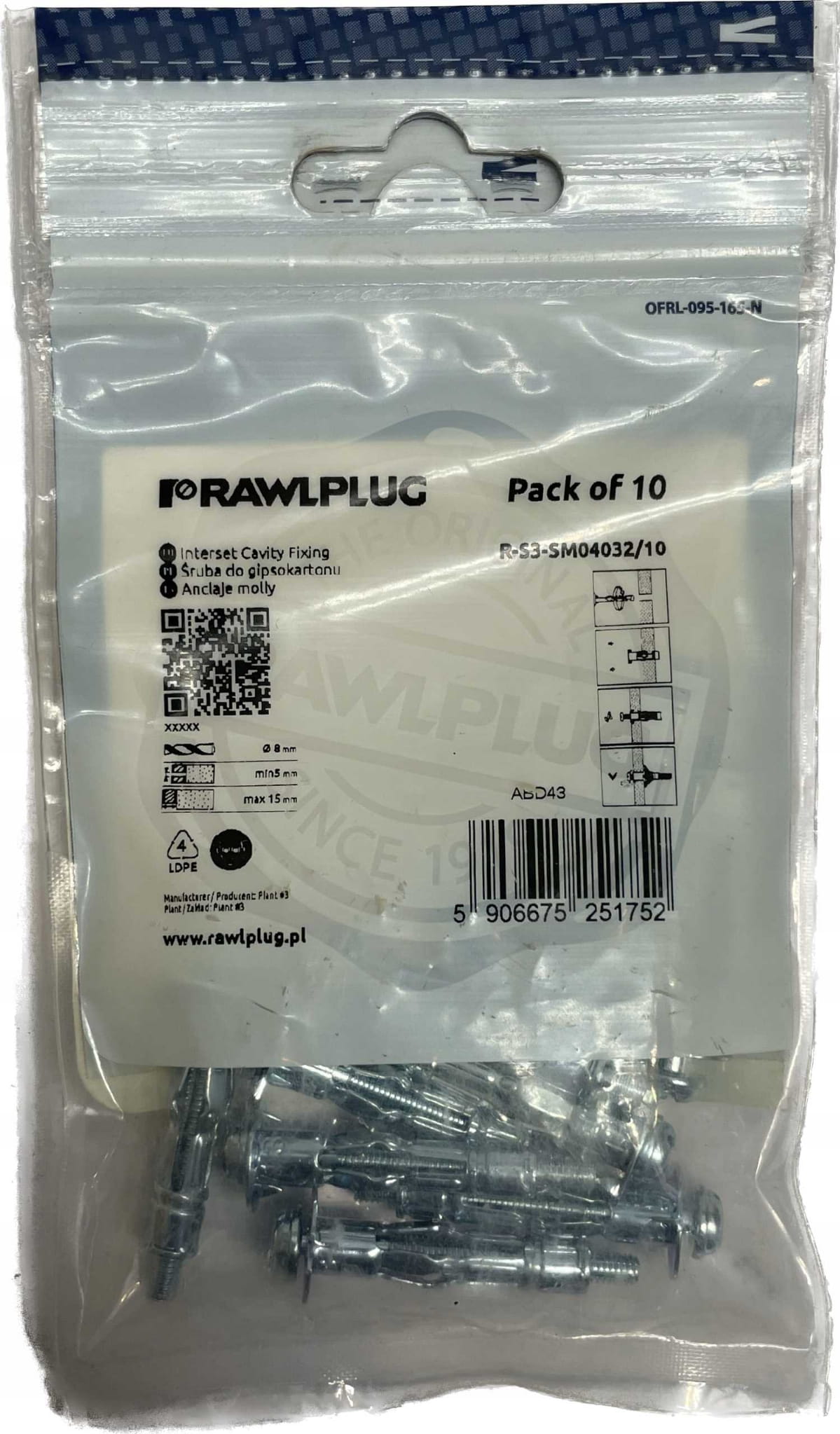 RAWLPLUG ŚRUBA DO GIPSOKARTONU M4 32MM 10 SZT.
