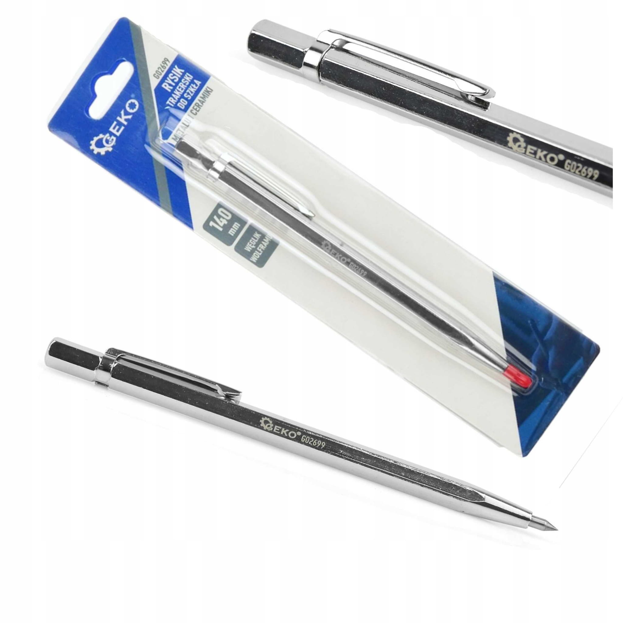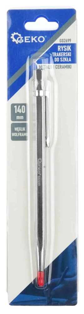 Rysik traserski GEKO do wyznaczania kształtów na powierzchniach szklanych, ceramicznych i metalowych. Rysik jest dobrej jakości i jest szeroko stosowany w szkle płaskim, witrażu itp. Najczęściej jest używany do cięcia małych witraży lub płytek ceramicznych.