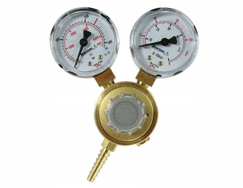 Reduktor jednostopniowy do argonu, mieszanki i dwutlenku węgla. Pozwala na obniżanie ciśnienia gazów pobieranych z butli do wymaganego ciśnienia wylotowego (roboczego) oraz zapewnia samoczynne utrzymanie tego ciśnienia na możliwie stałym poziomie niezależnie od zmian ciśnienia wlotowego.
