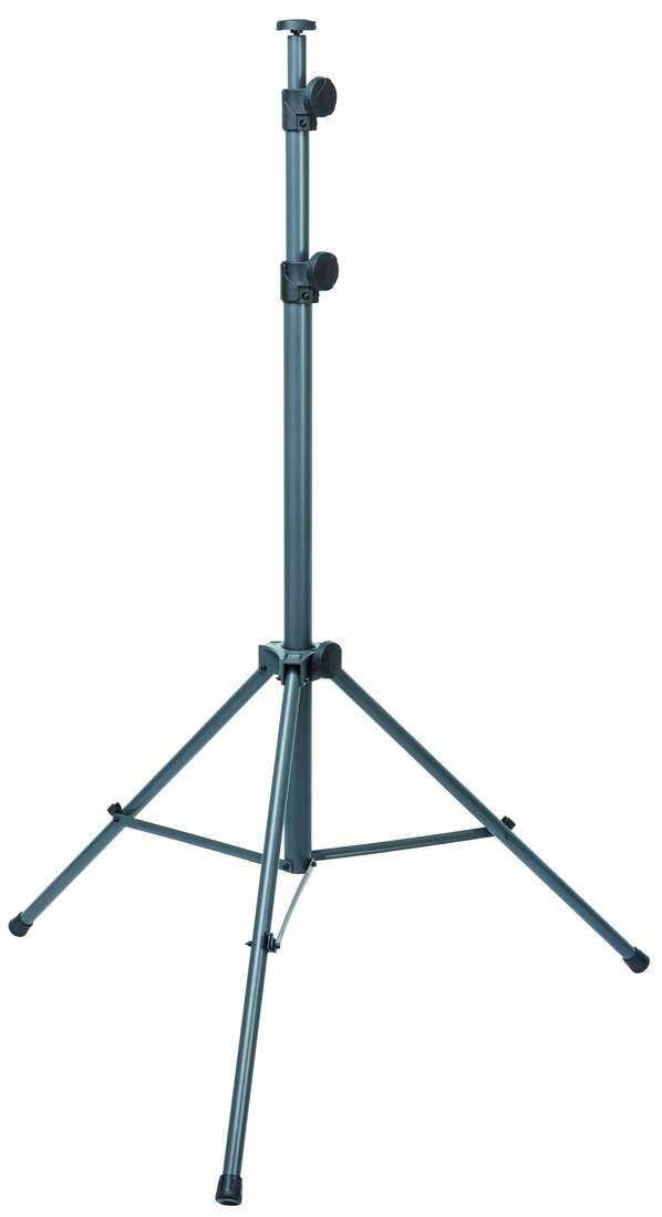 - Statyw jest wykonany z wytrzymałej stali malowanej proszkowo, a spawana stalowa nasadka montażowa (gwint 10 mm) zapewnia trwałość uniwersalnego statywu