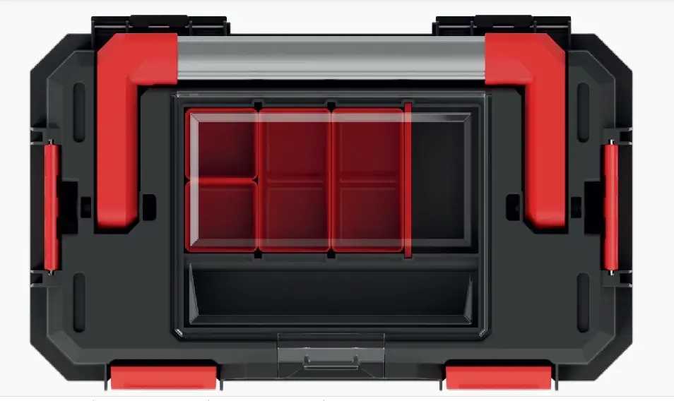 - w pokrywę wbudowany jest organizer wyposażony w kubki i przegrody ułatwiające magazynowanie elementów drobnicowych,