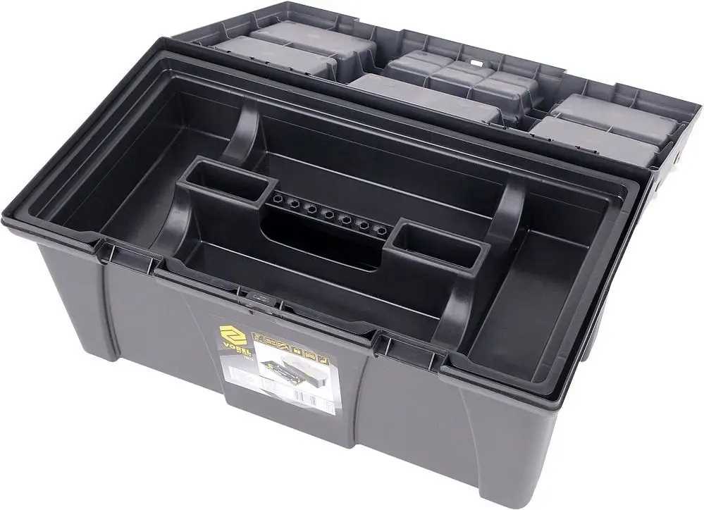 - Zawartość zestawu: skrzynka narzędziowa|tacka z uchwytami na bity|zamykany schowek x6