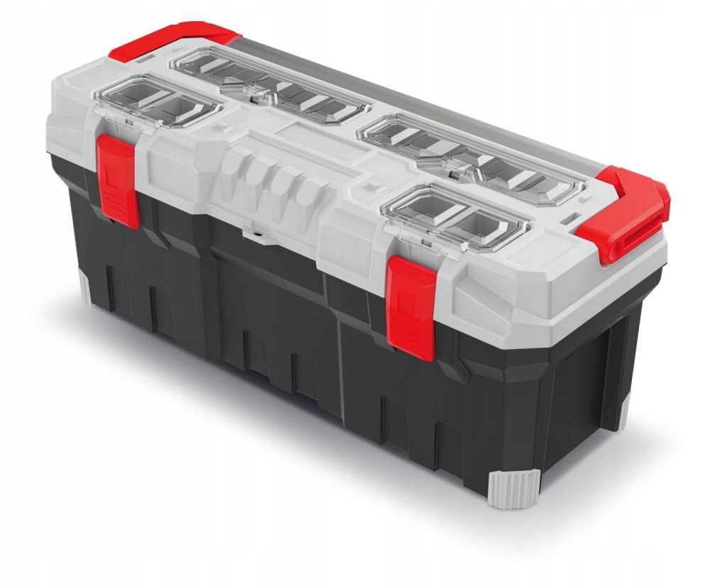 Bardzo duża skrzynka narzędziowa marki Kistenberg pozwala na organizację oraz transport narzędzi oraz akcesoriów o dużych gabarytach. Produkt został wyposażony w dużą, wyjmowalną tackę, która ułatwia przenoszenie niezbędnych narzędzi, akcesoriów oraz podręcznych elementów. Dzięki zastosowanym wewnątrz skrzyni wypustkom/zaczepom tacka nie przesuwa się w trakcie transportu. Specjalnie wzmocniona konstrukcja, ze wzmocnionymi narożnikami podstawy oraz policarbonowymi pokrywami organizerów oraz wykonanie z wytrzymałego tworzywa zapewnia trwałość i odporność na uszkodzenia. Mocna, aluminiowa rączka, solidne zamknięcia oraz możliwość zamontowania kłódki sprawiają, że Twoje narzędzia są już bezpieczne. Poza walorami użytkowymi skrzynka Titan ma bardzo atrakcyjny wygląd - jest to doskonała propozycja na prezent dla wymagającego majsterkowicza i profesjonalisty.