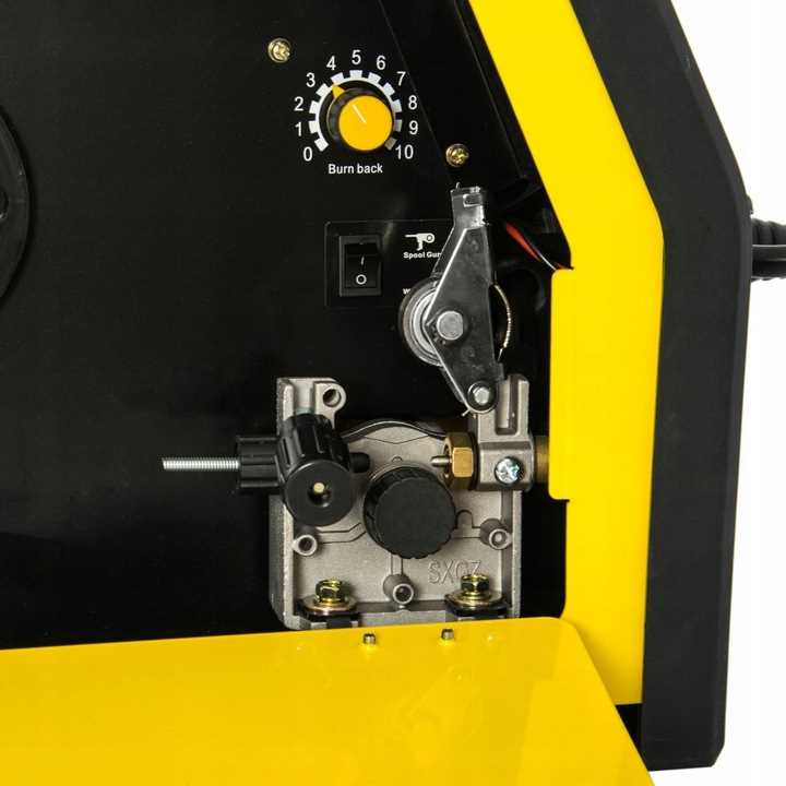 Urządzenie posiada płynną regulacje parametrów spawania, wyposażone jest w przeciążeniowy układ zabezpieczenia termicznego, zapobiegający nadmiernemu przegrzewaniu się. Spawarka wyposażona jest w 2-rolkowy podajnik drutu z gniazdem "euro złącze" co pozwala na podłączenie różnych typów uchwytów spawalniczych.