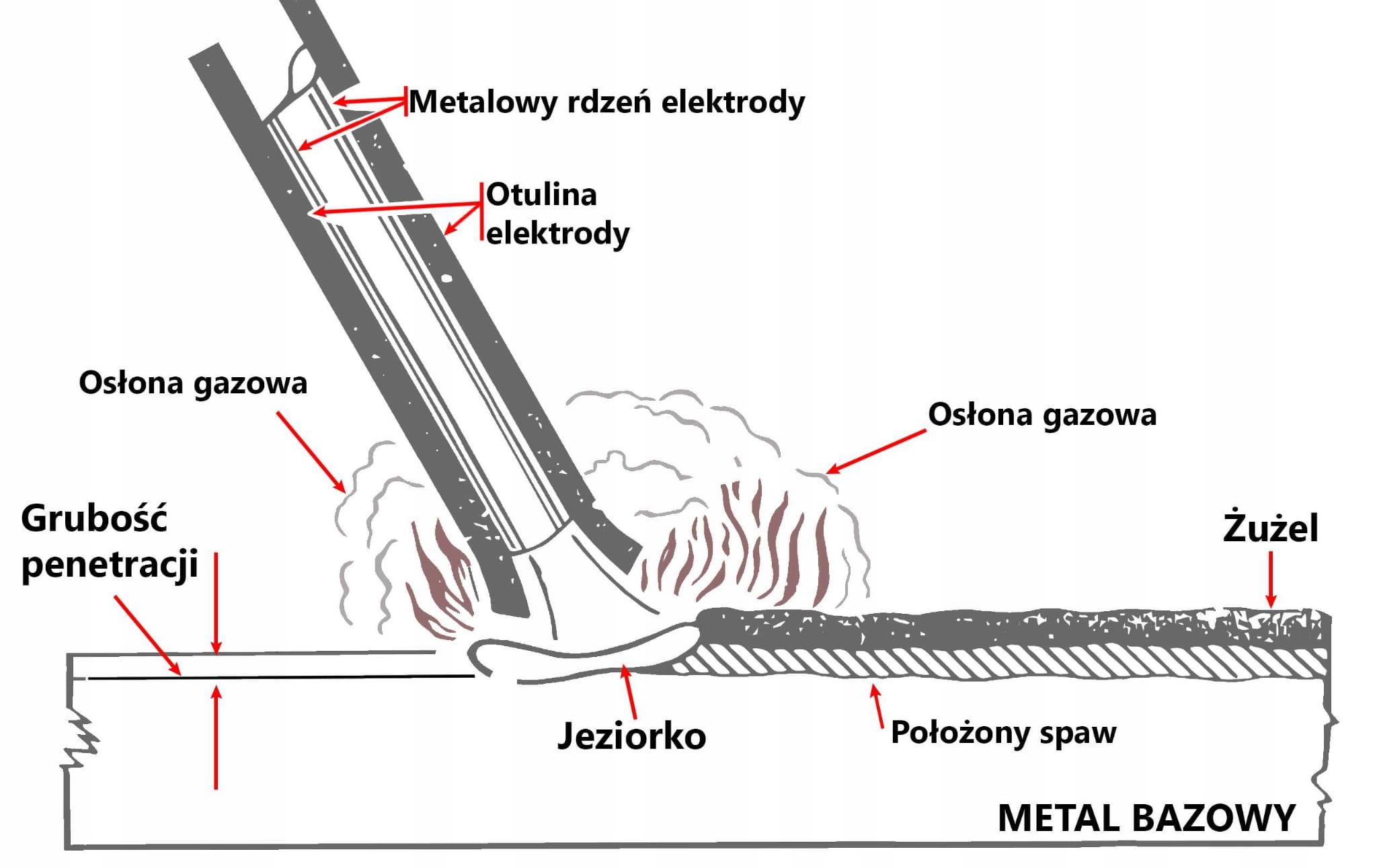W metodzie MMA wykorzystywana jest elektroda otulona, która składa się z metalowego rdzenia pokrytego sprasowaną otuliną. Pomiędzy końcem elektrody a spawanym materiałem wytwarzany jest łuk elektryczny. Zajarzenie łuku ma charakter kontaktowy poprzez dotknięcie końca elektrody do materiału spawanego. Możliwa regulacja mocy spawania od 1 do 200 amper.