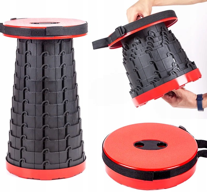 Największą zaletą stołka jest regulowana wysokość. Bez problemu dostosujesz wysokość do swoich potrzeb. Złożony stołek zajmuję mało miejsca, z łatwością zmieścisz go do plecaka, torby.