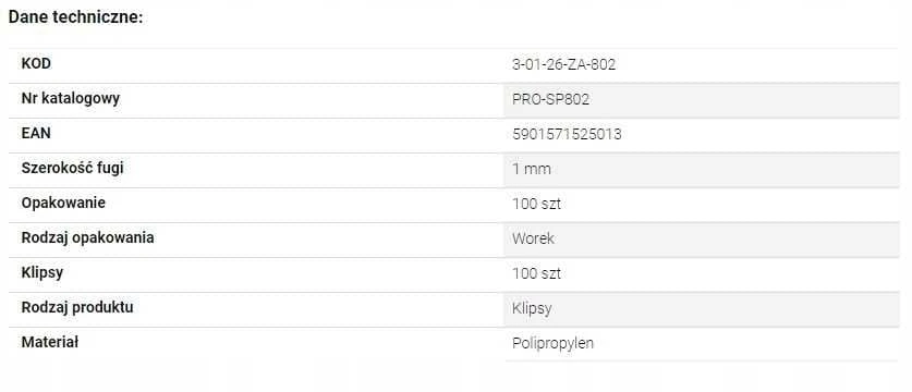 SYSTEM POZIOMUJĄCY PRO-SP800 1MM KLIPSY 100 SZT WOREK