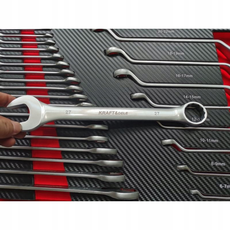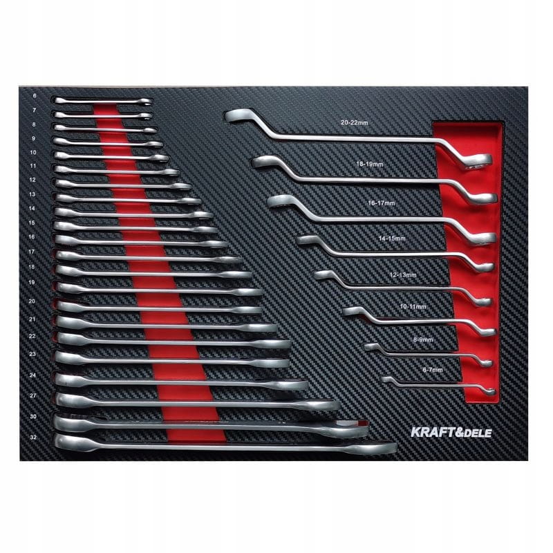 - 22 kluczy płasko-oczkowych – 6-7-8-9-10-11-12-13-14-15-16-17-18-19-20-21-22-23-24-27-30-32