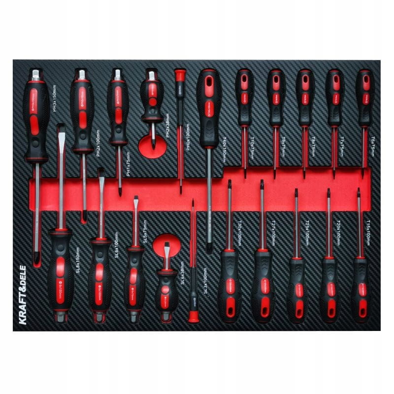 - 11 wkrętaków typu torx – T40x150-T10x75-T9x75-T8x75-T7x75-T6x75-T15x100-T20x100-T25x100-T27x100-T30x100