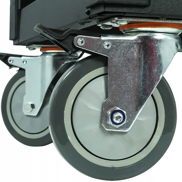 - 2 koła stałe oraz 2 koła skrętne o średnicy 125 mm wyposażone w hamulec
