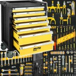 Szafka została wyposażona w zestaw 156 narzędzi ze stali chromowo-wanadowej, posiadających wysoką odporność na odkształcenia i zużycie. Grzechotki są wyposażone w system QUICK RELASE oraz mechanizm 72 zębów.