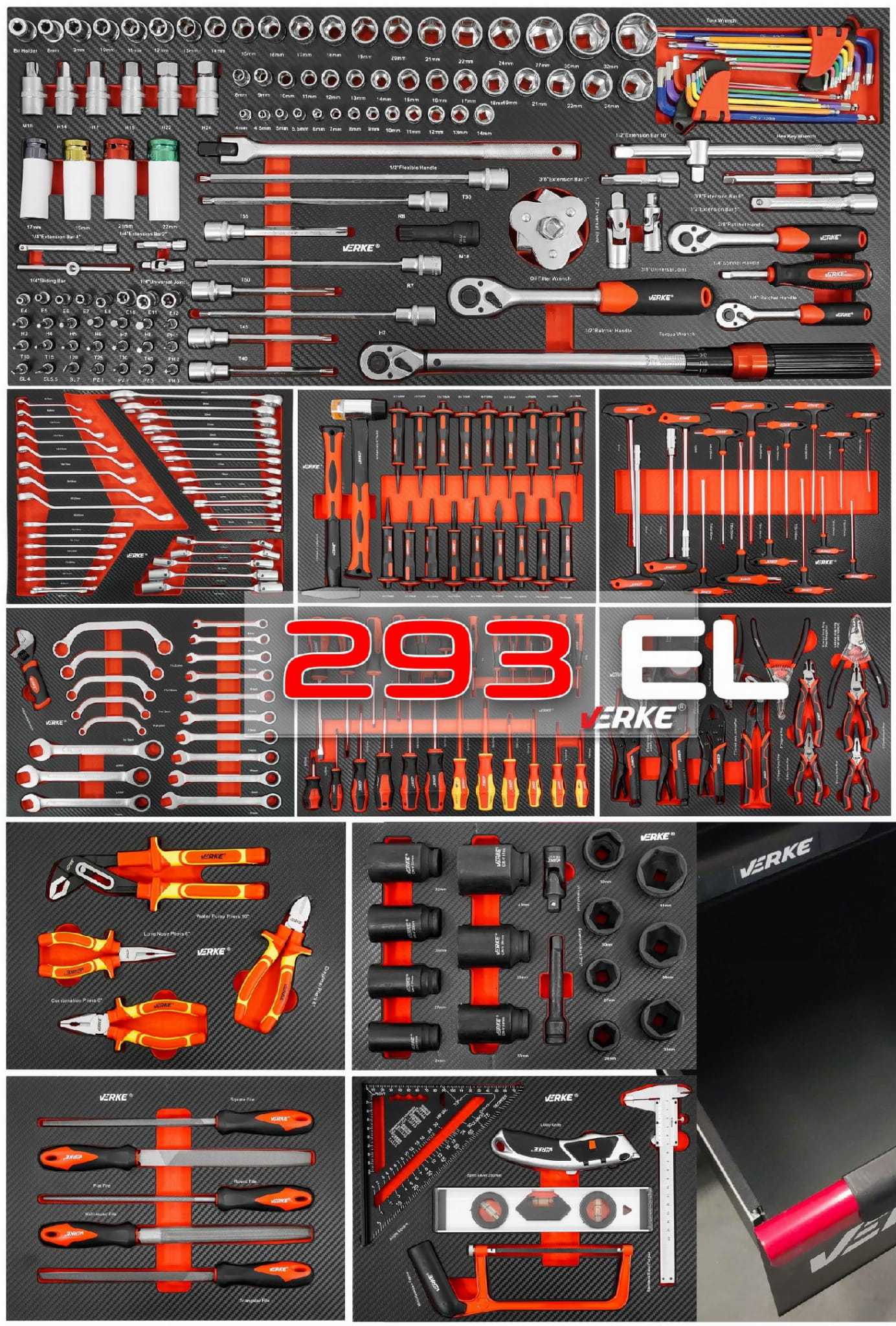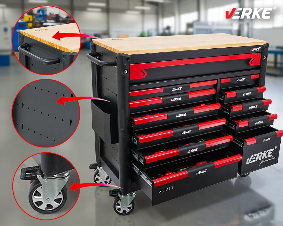 SZAFKA NARZĘDZIOWA WYPOSAŻENIE 293 SZT 12-SZUFLADOWA Verke Premium Line