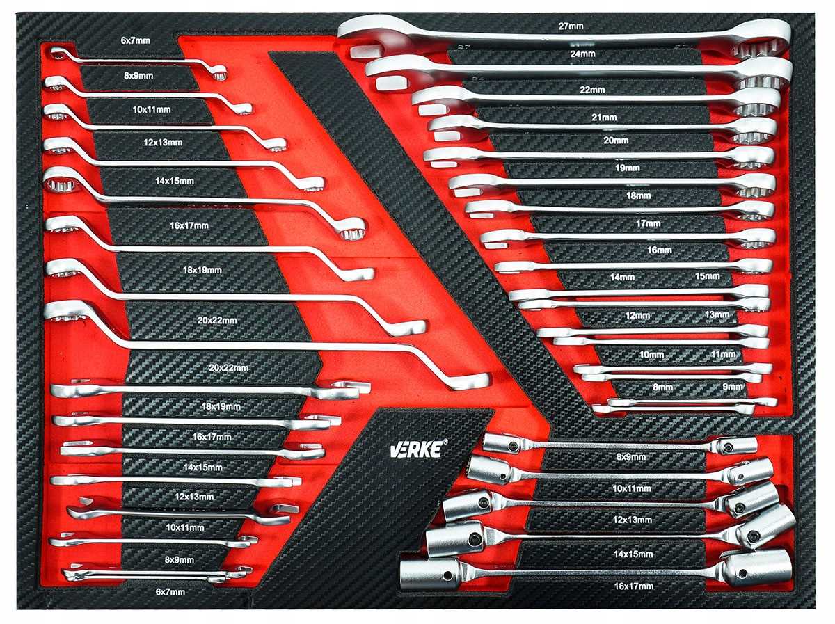 ✔️ Klucz płasko-oczkowy (17 sztuk): 8;9;10;11;12;13;14;15;16;17;18;19;20;21;22;24;27 mm