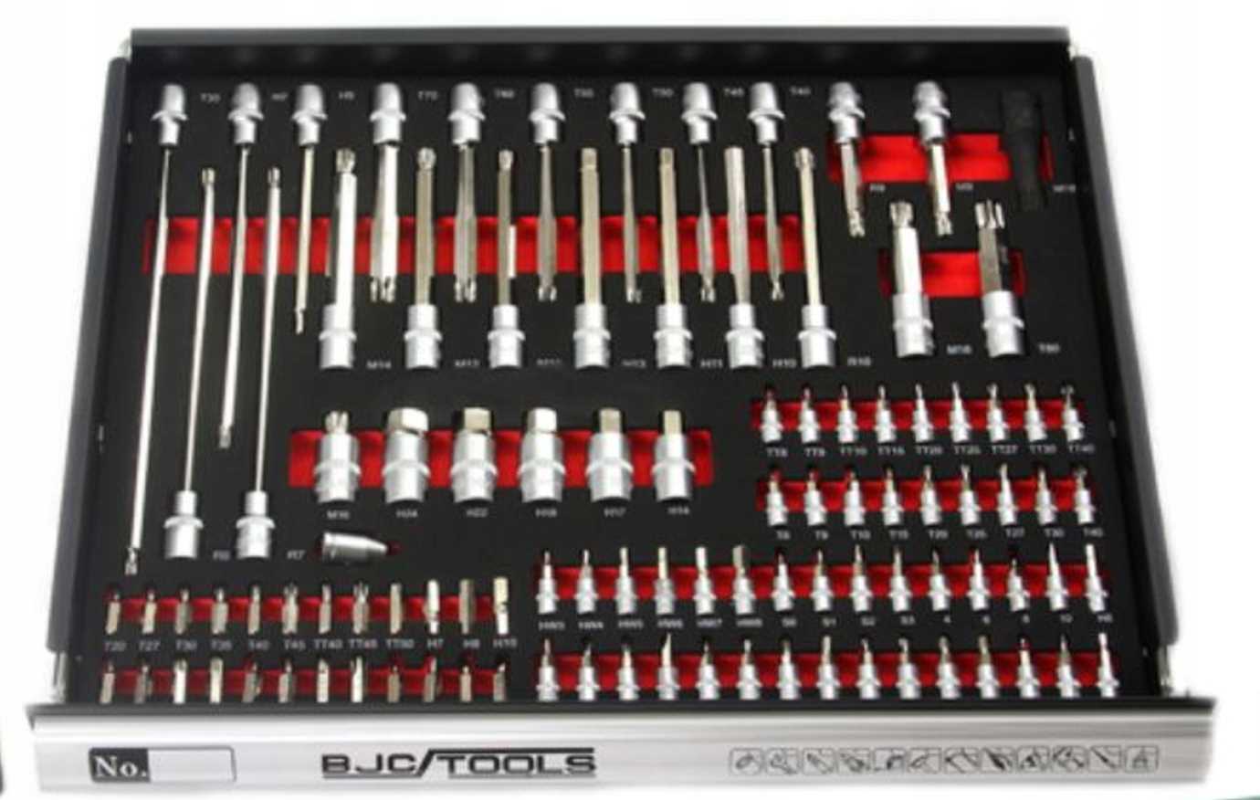 - asadki 1/4" z bitami: Torx - T8/T9/T10/T15/T20/T25/T27/T30