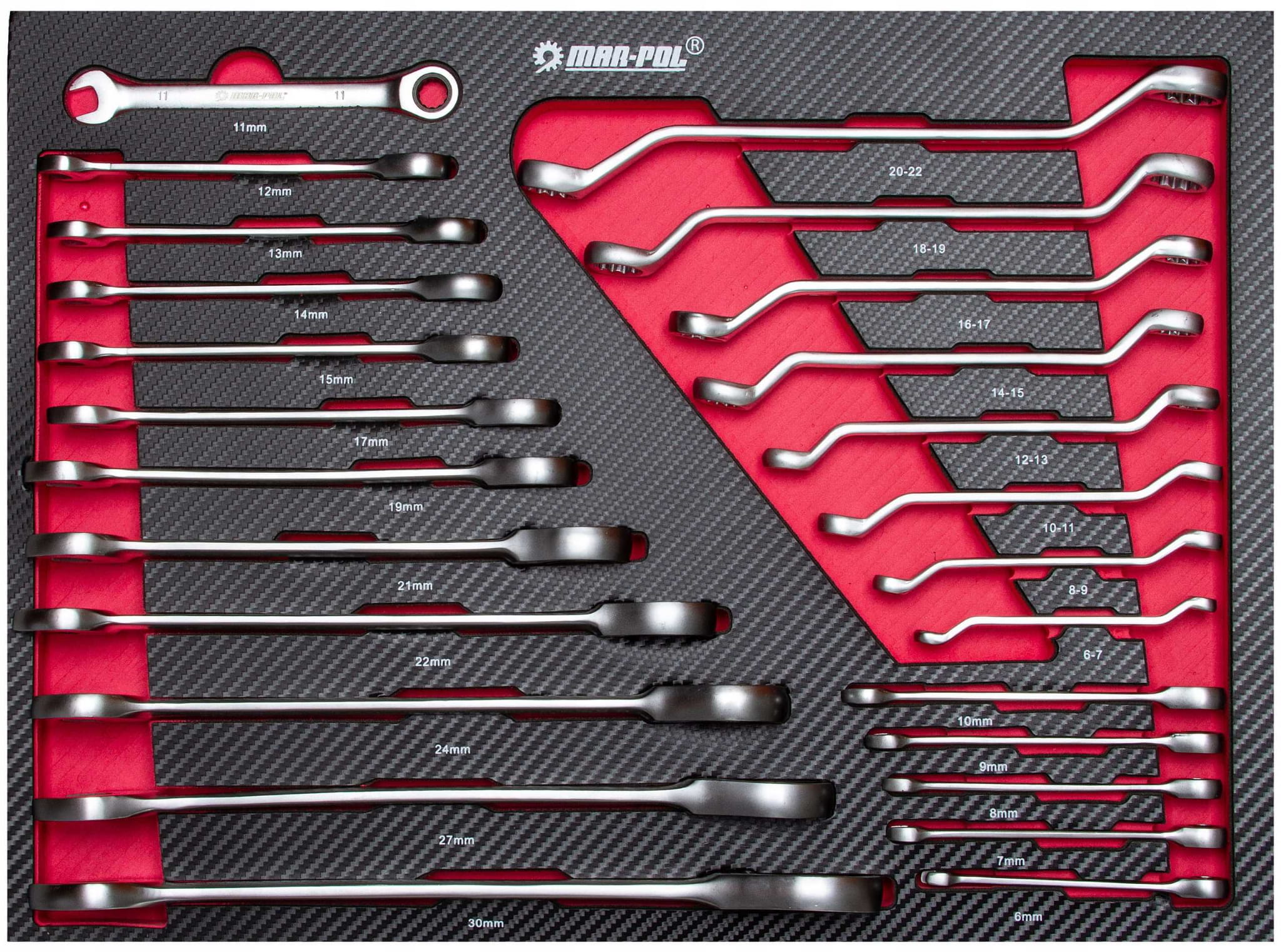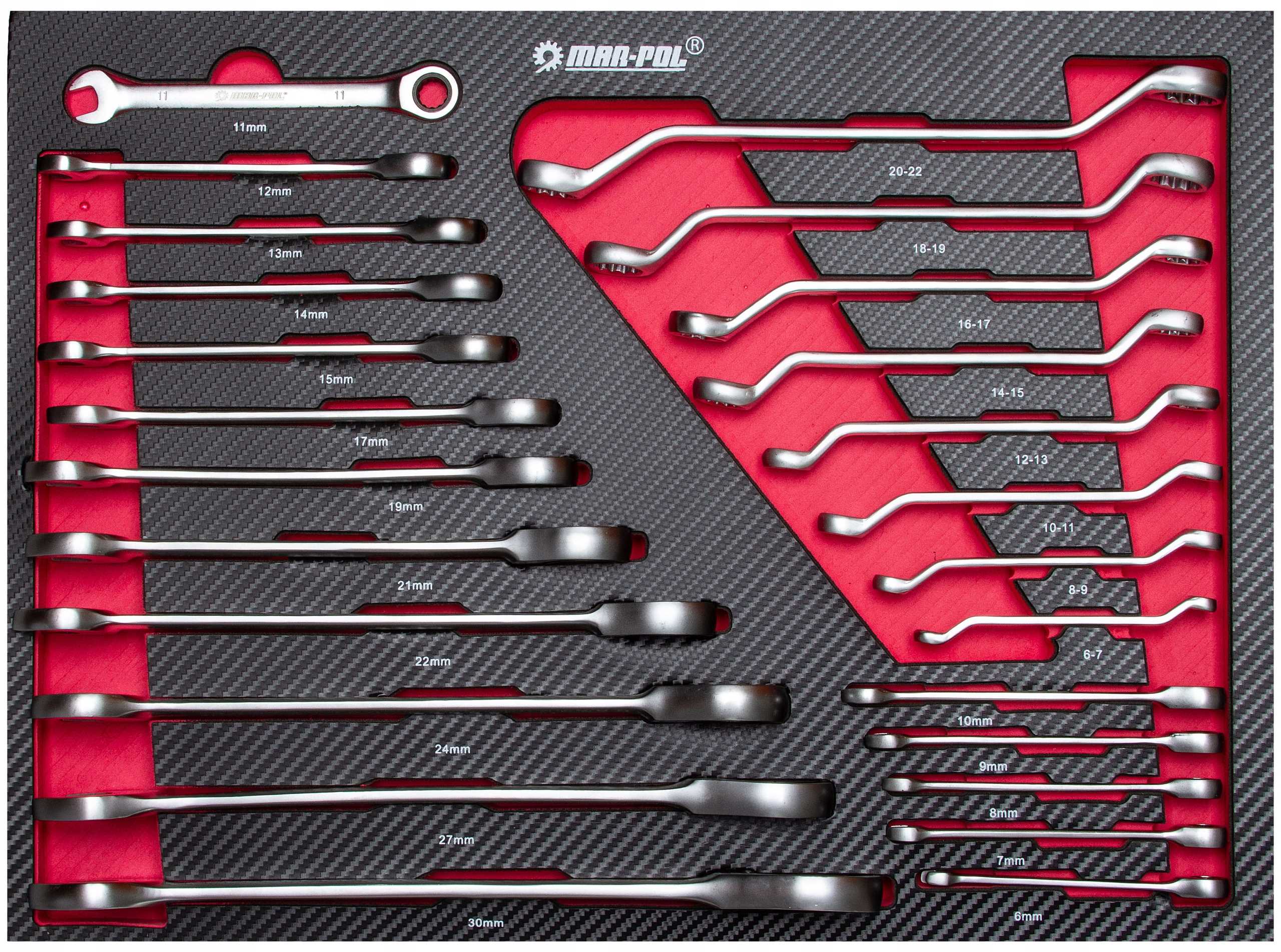 - 17 kluczy płasko-oczkowych z grzechotką 6-7-8-9-10-11-12-13-14-15-17-19-21-22-24-27-30