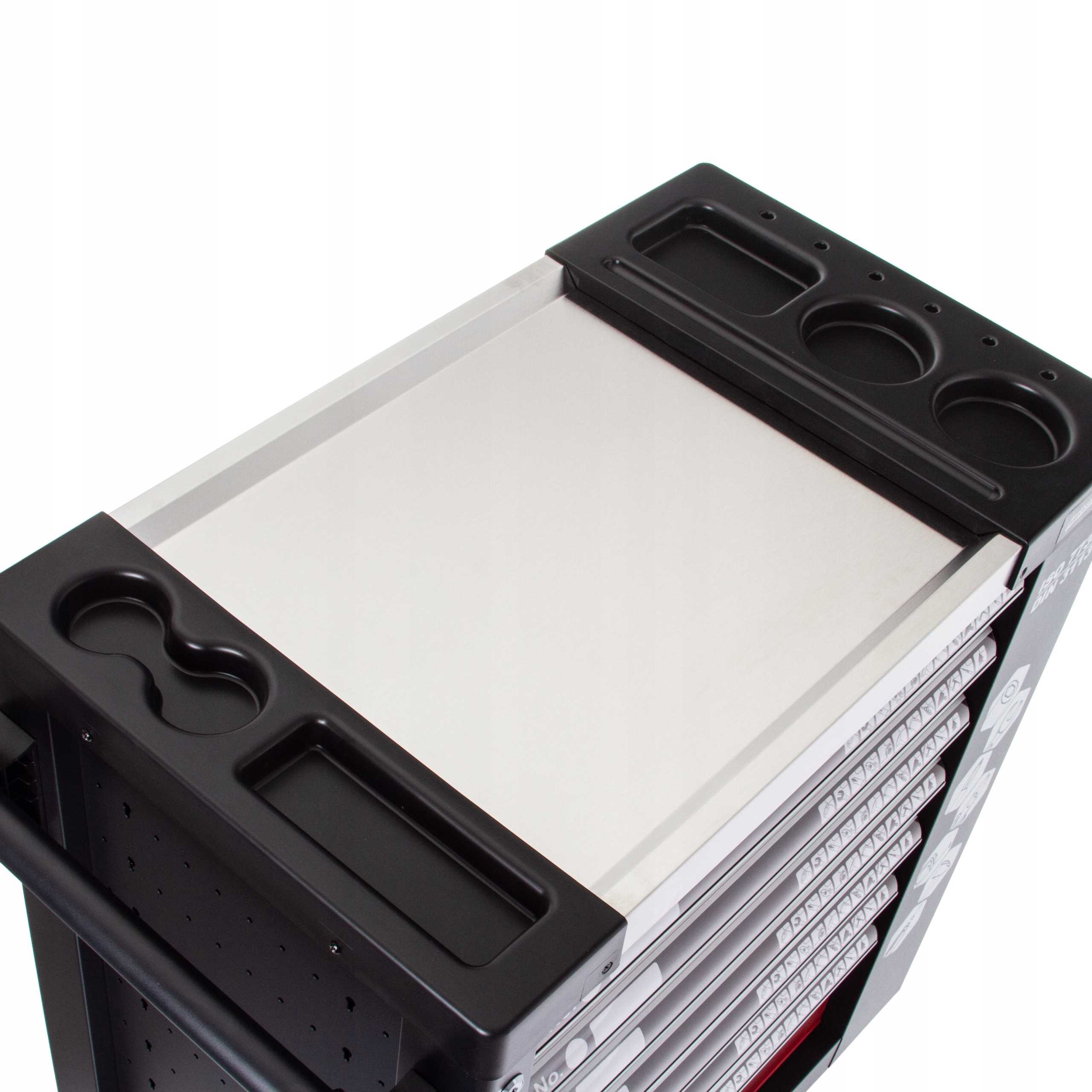 Wózek pozwala utrzymać porządek na stanowisku pracy i chroni narzędzia przed kradzieżą dzięki zamkowi na kluczyk.