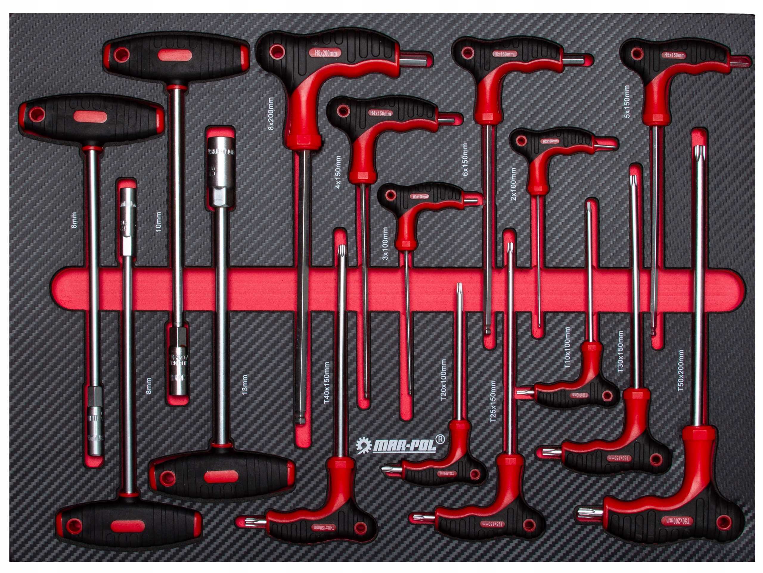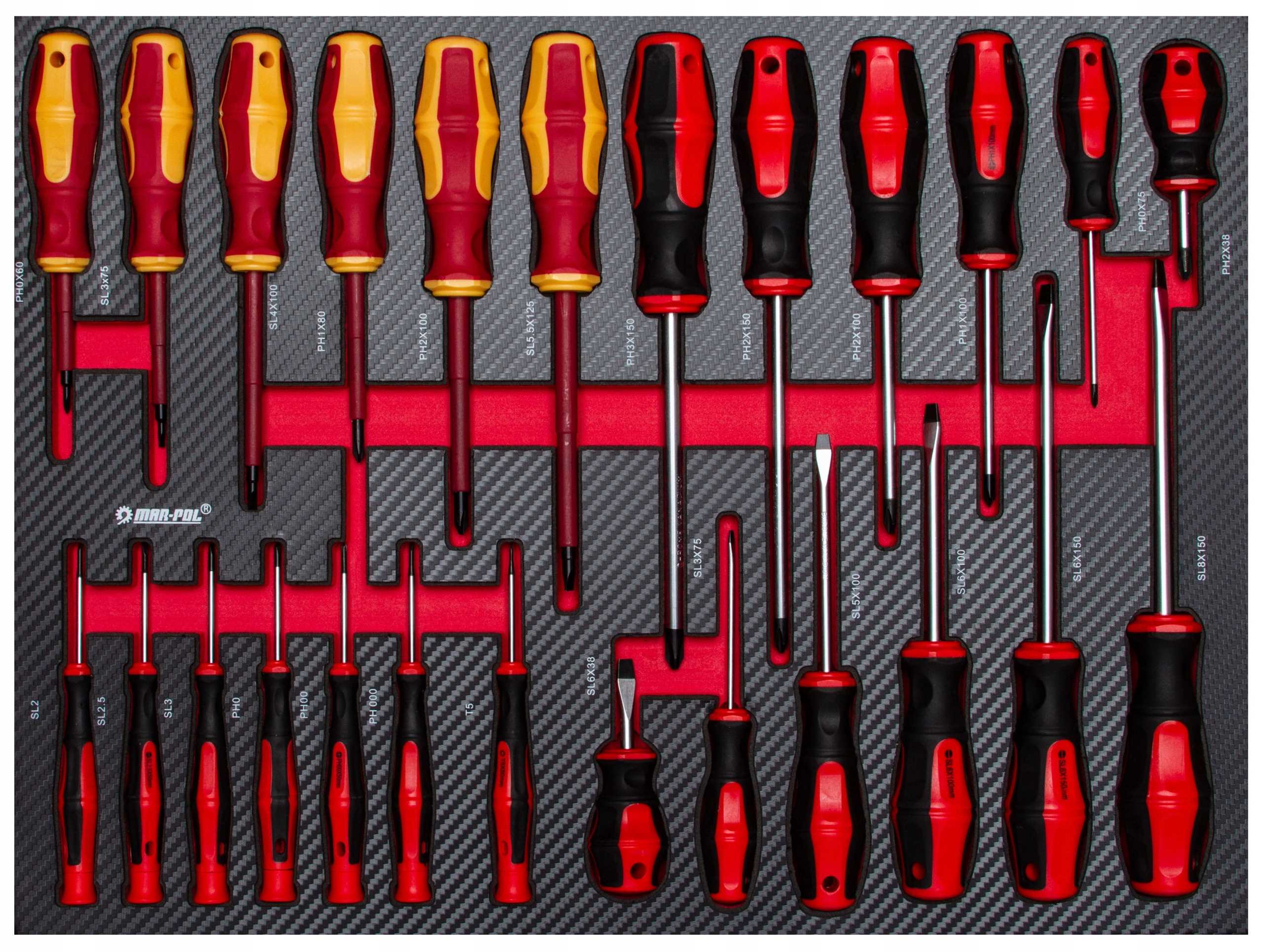 Zestaw szufladowy 16 wkrętaków i kluczy trzpieniowych typu T