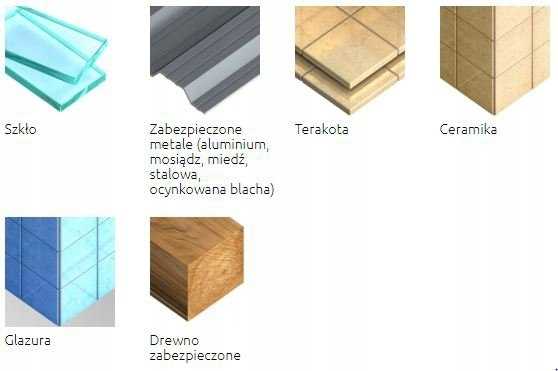 - • Zabezpieczone metale (aluminium, mosiądz, miedź, stalowa, ocynkowana blacha)