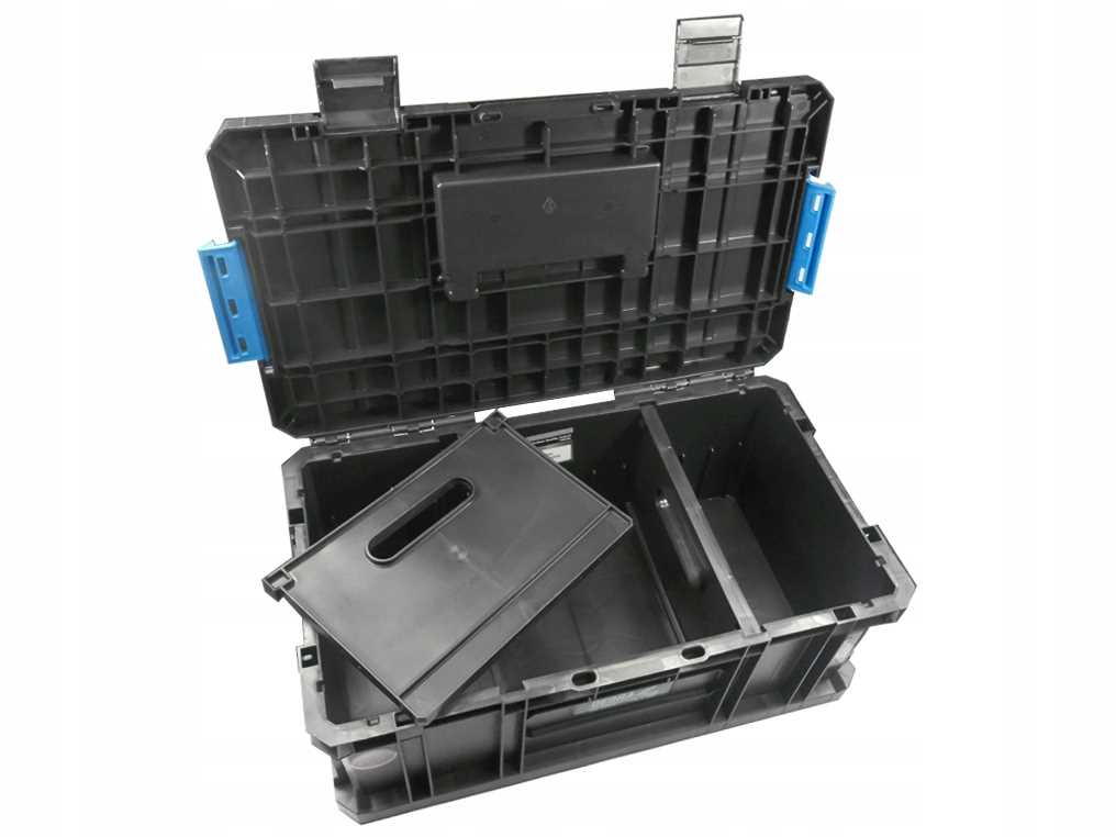Skrzynia posiada mocną, wygodną rękojeść z wysokogatunkowego tworzywa, dzięki której można ją łatwo transportować, a poliamidowe zaczepy gwarantują solidne i wytrzymałe połączenie z pozostałymi skrzyniami modułowymi.