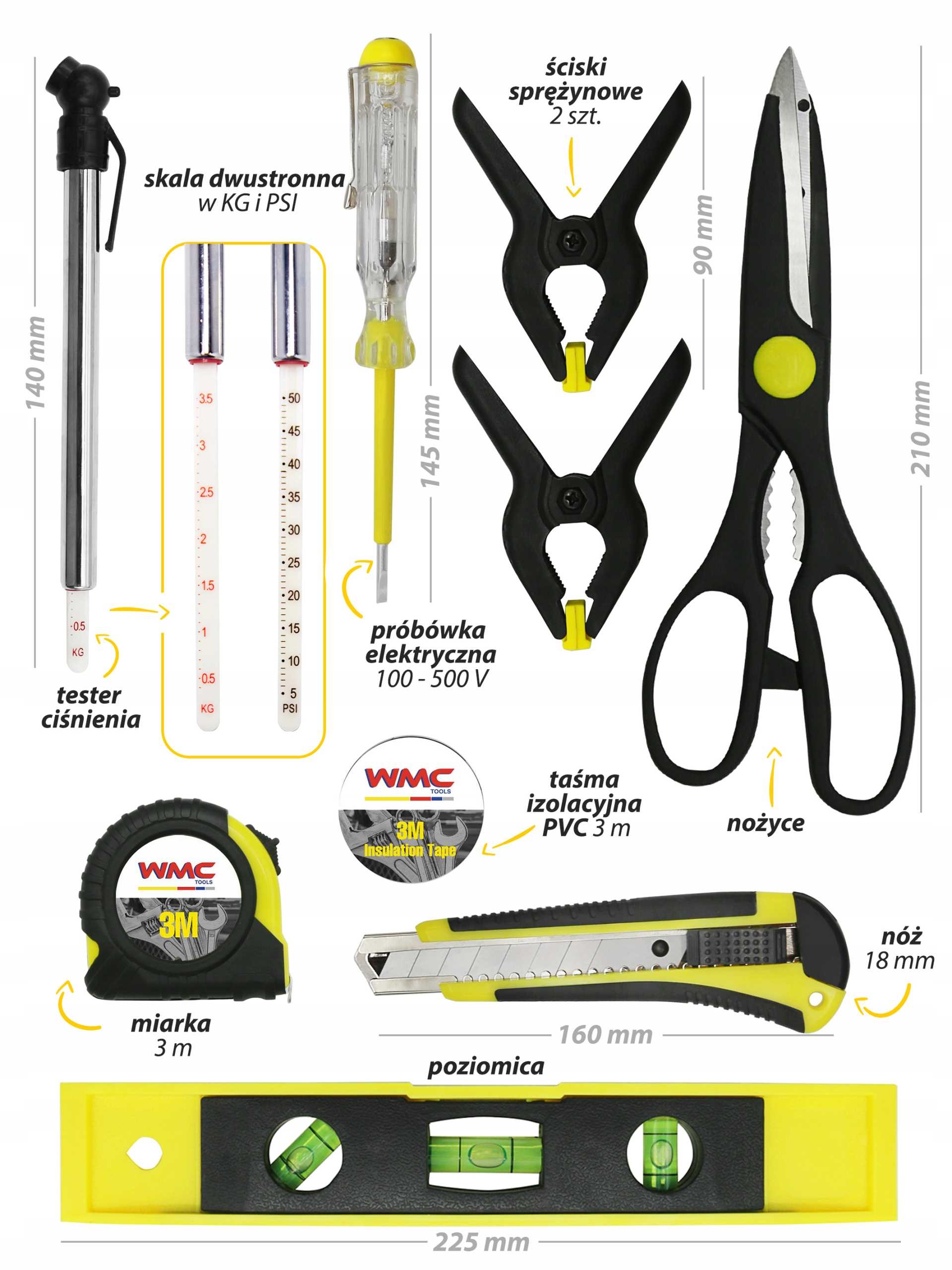 - Poziomica 225 mm – 1 szt.