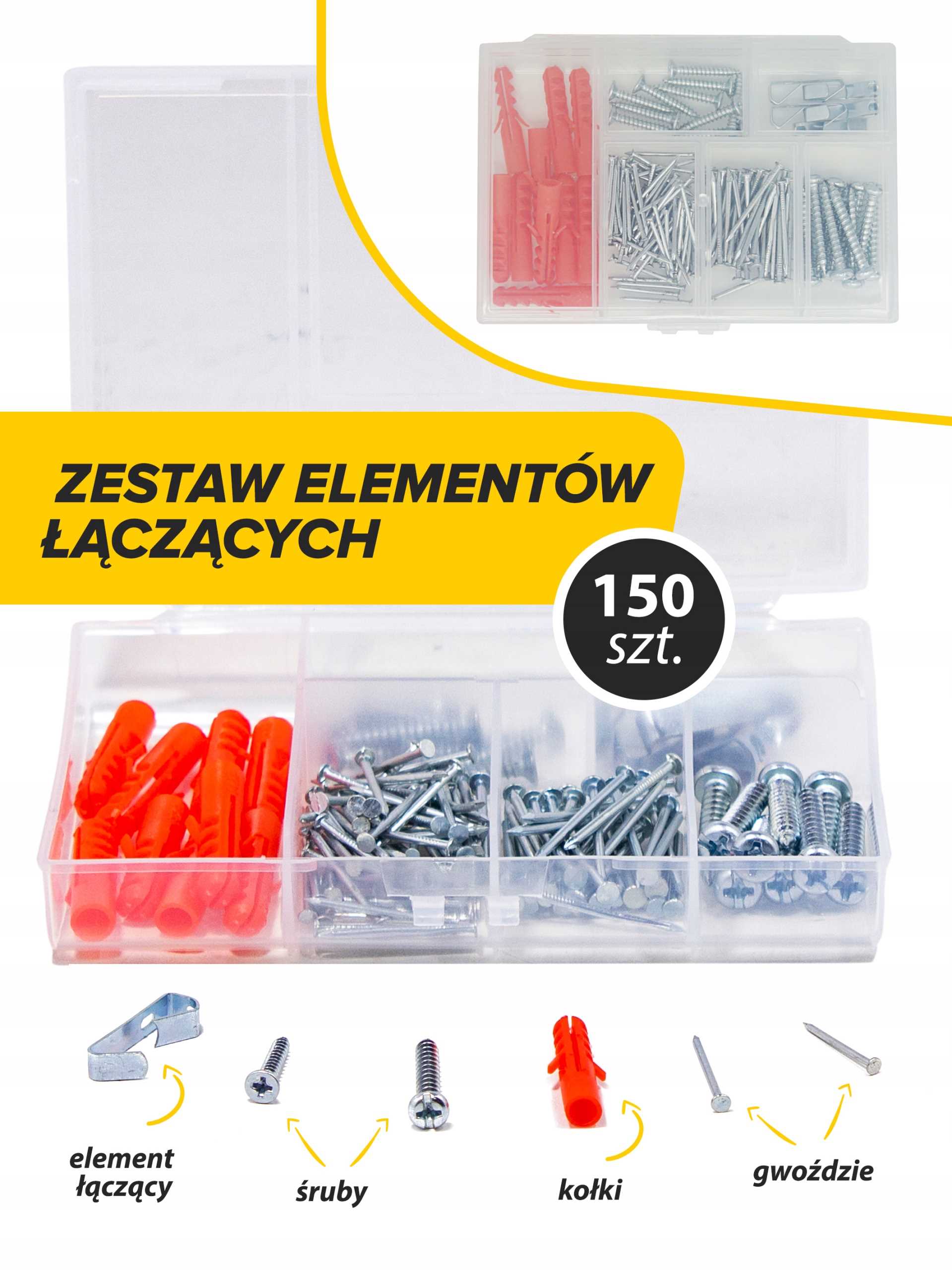 - Zestaw elementów łączących (śruby, kołki, konektory itp.) – 150 szt.