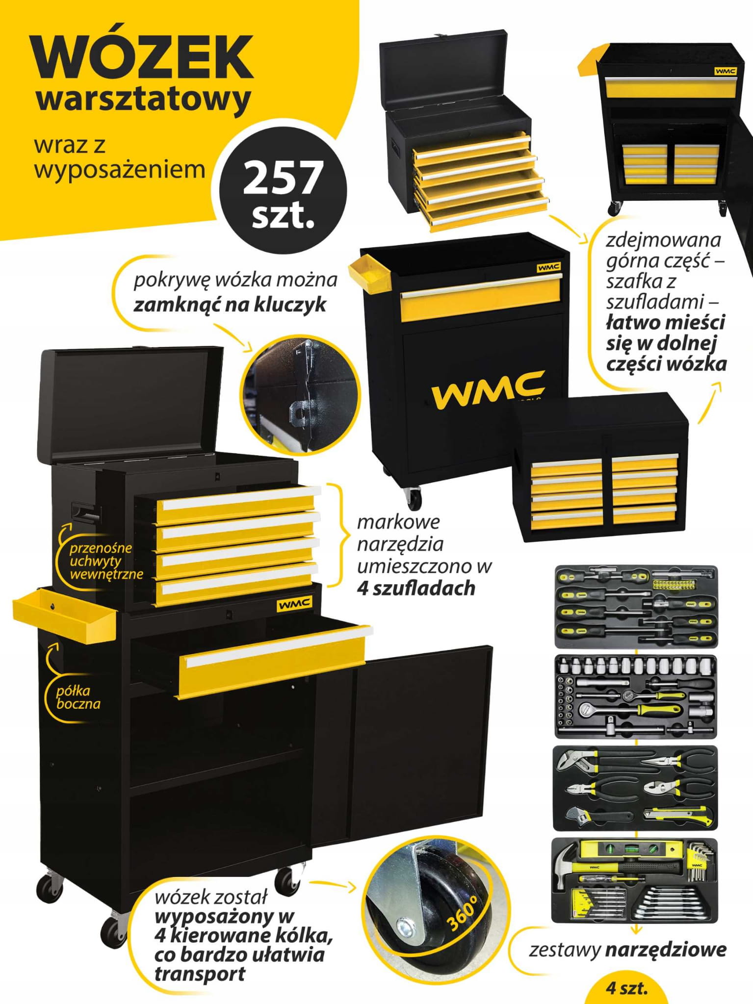 SZAFKA NARZĘDZIOWA WÓZEK WARSZTATOWY 5 SZUFLAD 257 EL. WMC