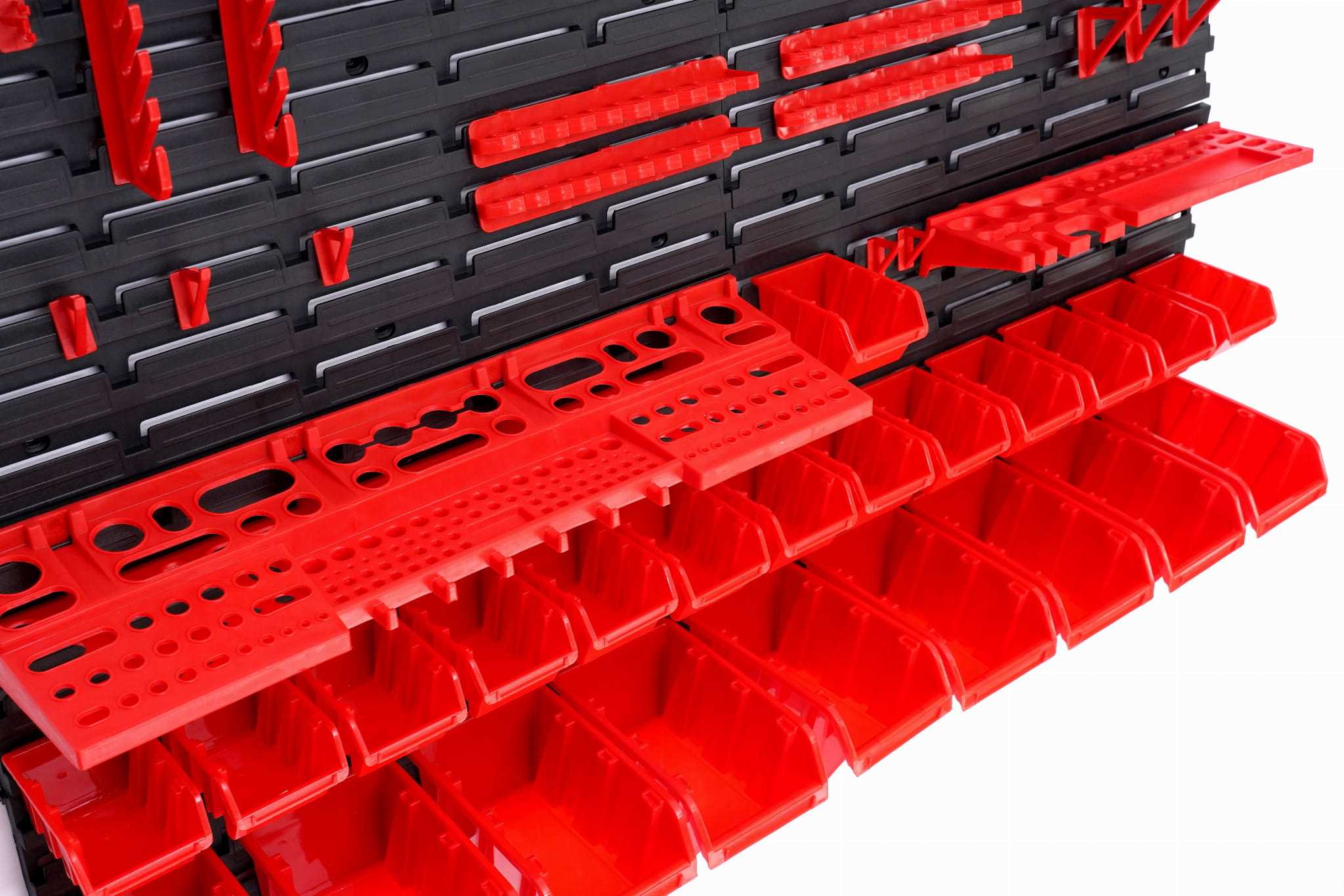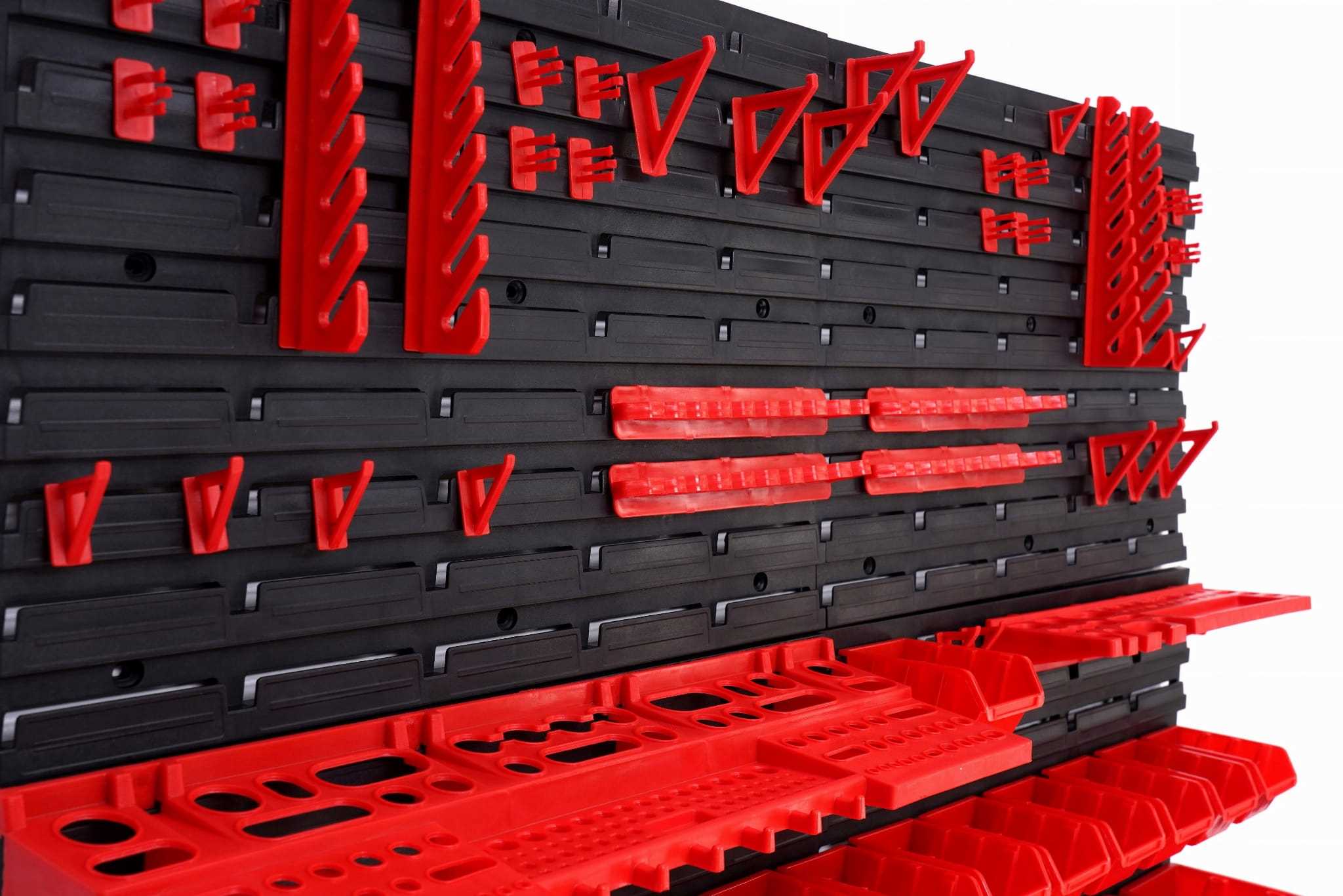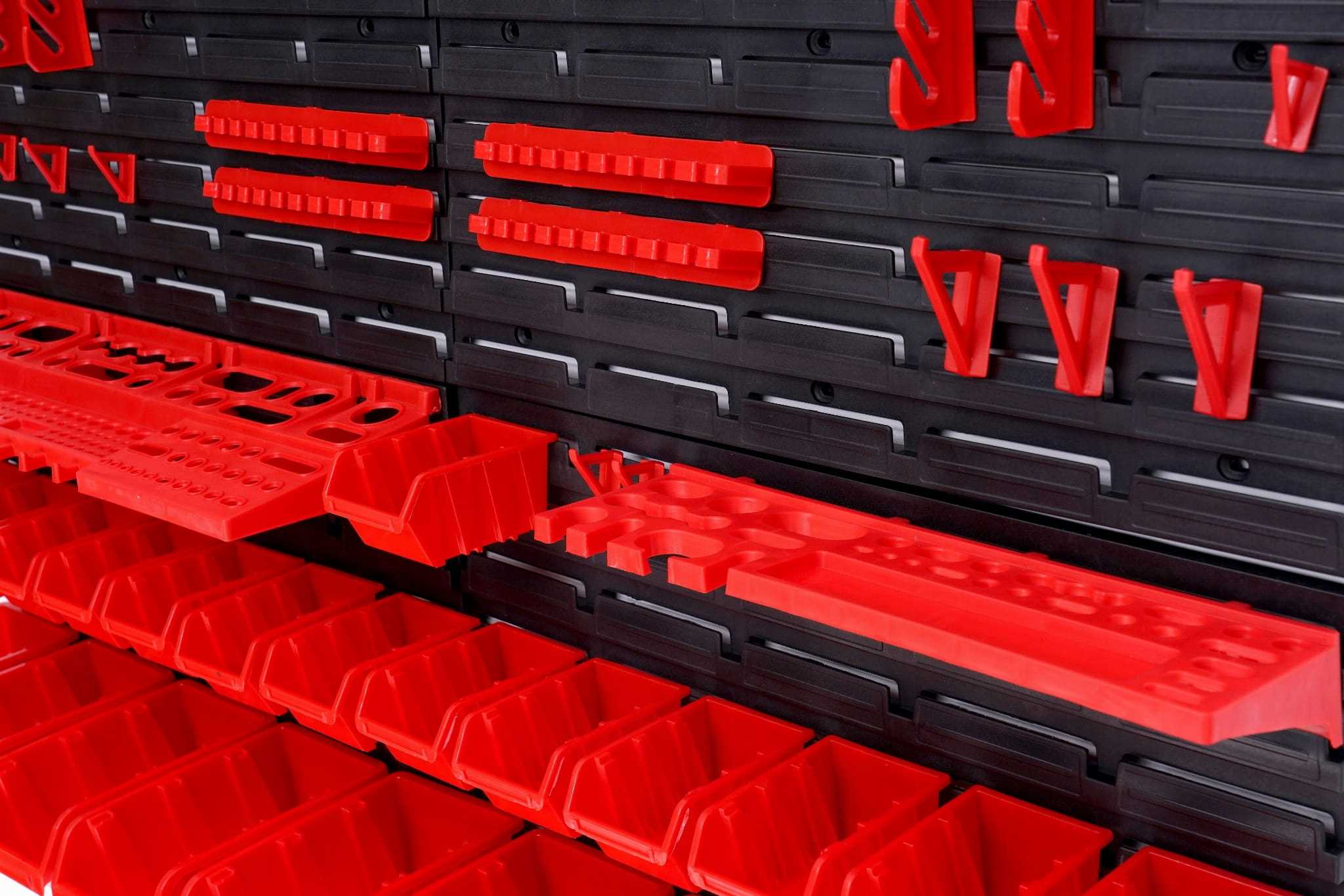 ✴️ Tablice narzędziowe mają specjalne szyny i otwory perforacje, dzięki którym montaż pojemników i uchwytów na narzędzia odbywa się bez użycia narzędzi.