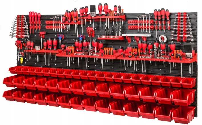 Zestaw sprawdzi się w każdym miejscu gdzie chcemy przechowywać narzędzia, śrubki, kołki itp.
