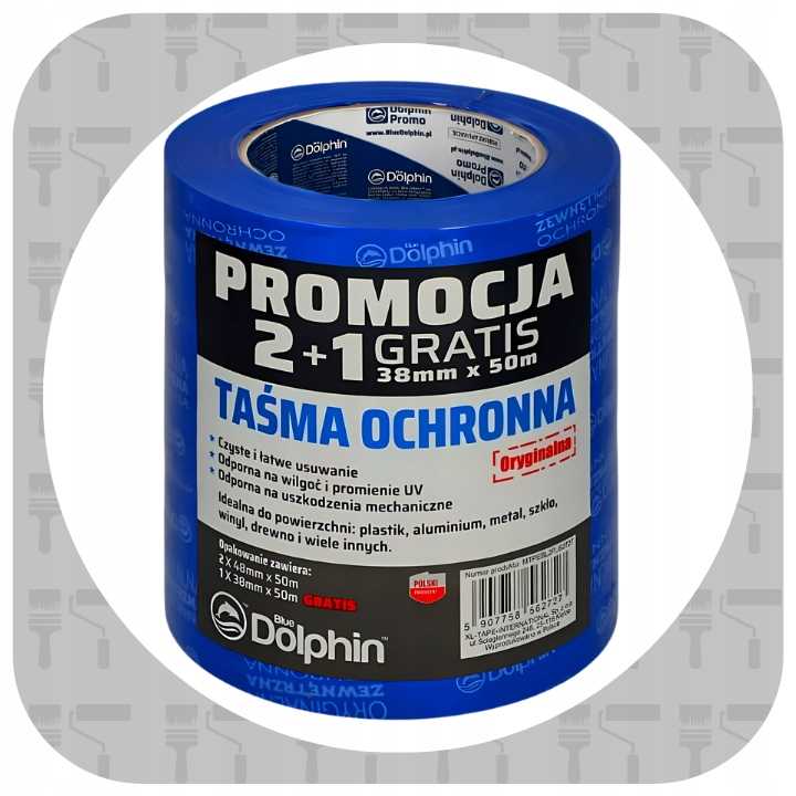 ✅ Taśma ochronna zewnętrzna Blue Dolphin przeznaczona jest do prac malarskich i ogólnobudowlanych na zewnątrz.