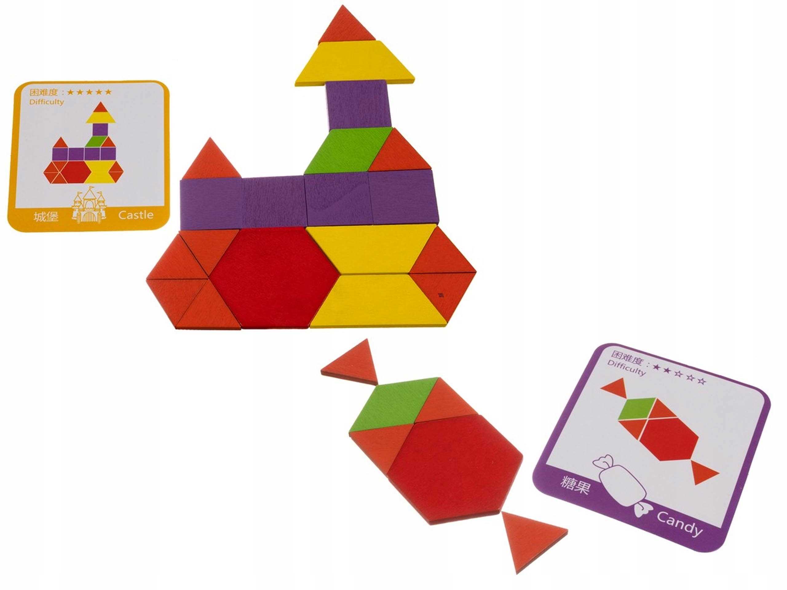 Znajdująca się w ofercie układanka edukacyjna figury geometryczne rozwija oraz uczy dzieci między rozpoznawania kolorów oraz kształtów figur geometrycznych. Poszczególne figury występują w różnych kolorach, a w zestawie znajdują się karty o różnym poziomie trudności, które oznaczone są gwiazdkami oraz z obrazkami do układania.
